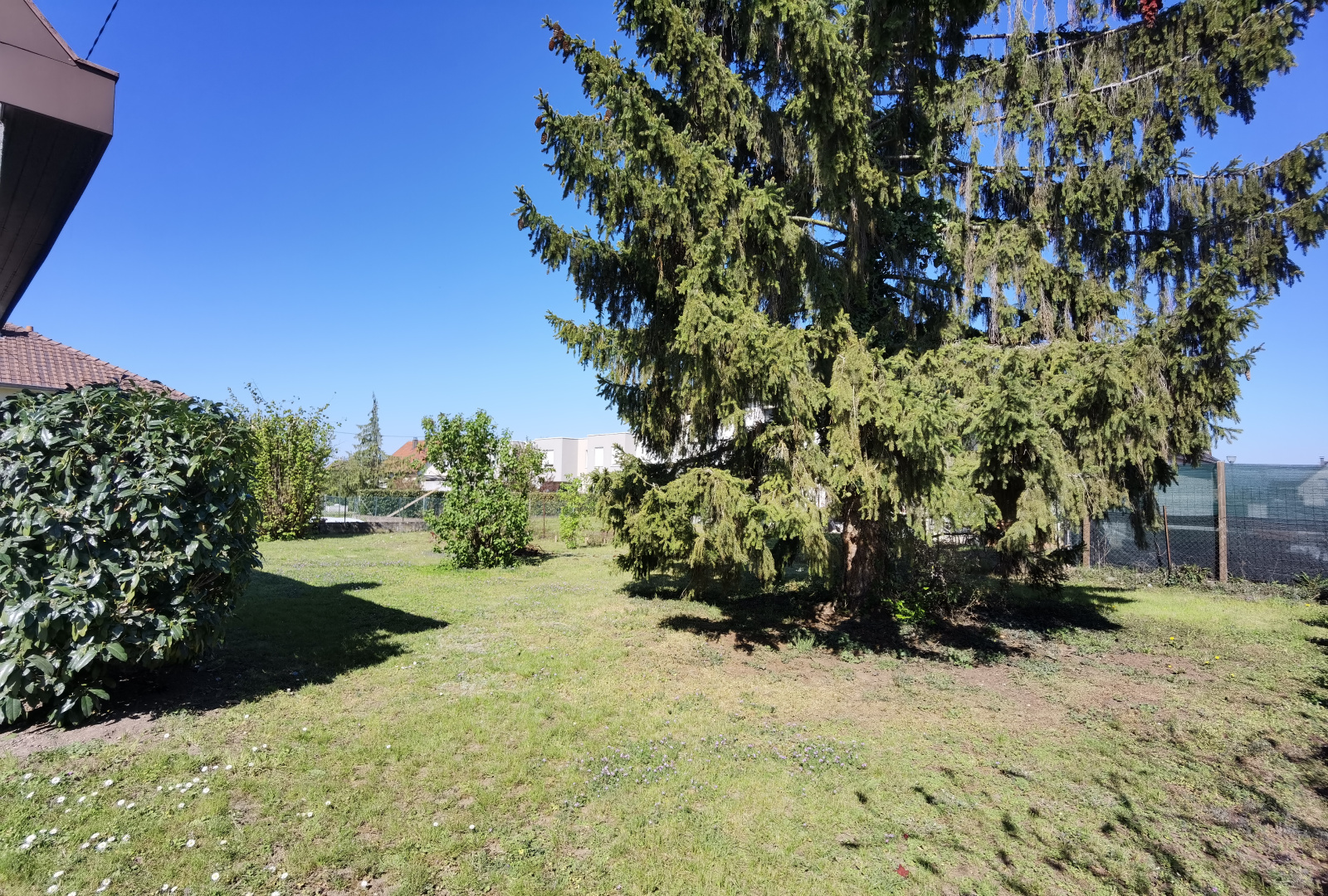rixheim, au calme, proche écoles, transports, maison 5p, an 80, cuisine éq récente ouverte sur séjour traversant de 27m², 3chambres+1 grande en sous sol aménagé, salle de bain éq (douche et baignoire), cave, buanderie, garage, terrasse, sur un magnifique jardin clos et arborés de 7.70ares. excellent état!