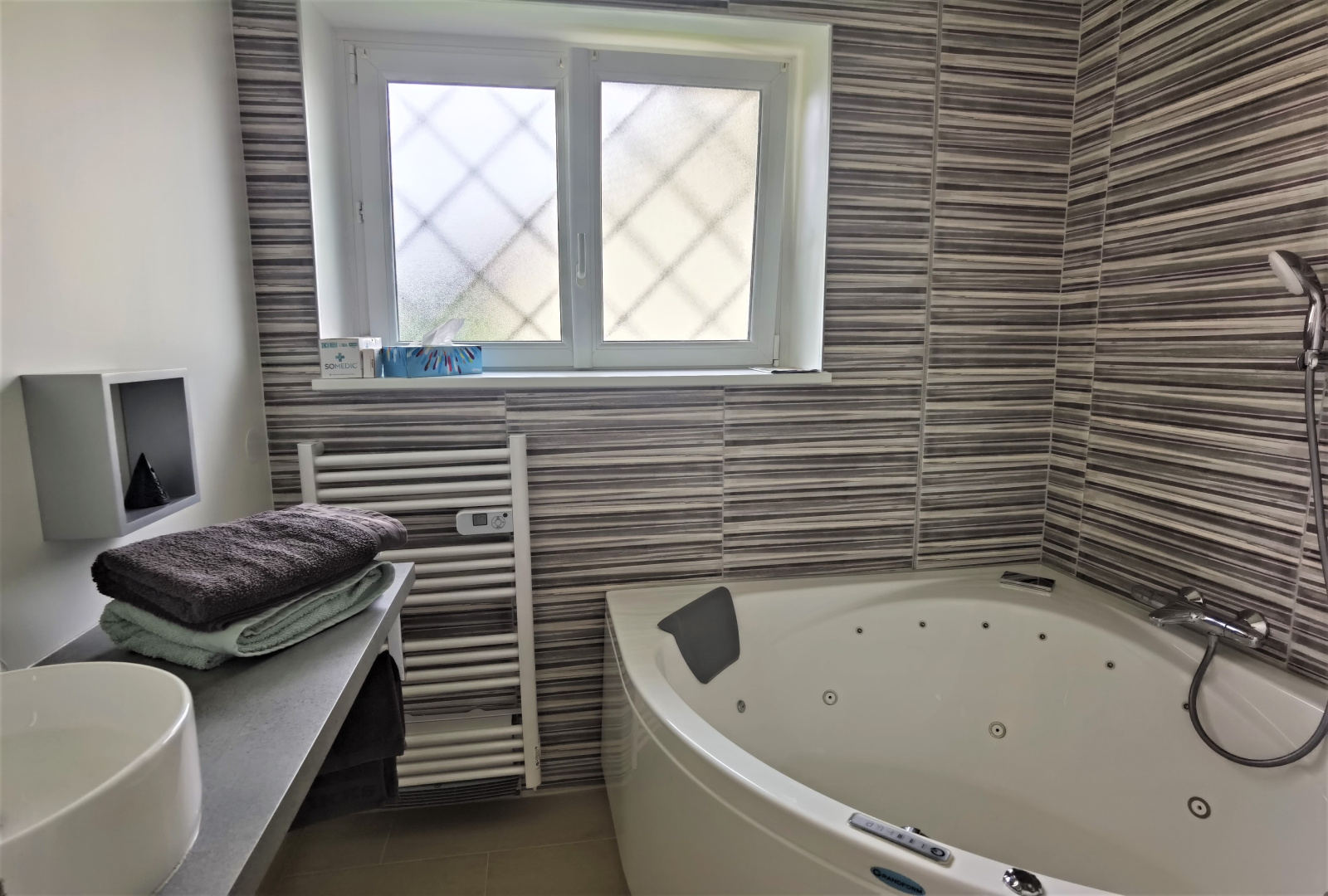 Sous sol: garage double, pièce aménagée, buanderie,