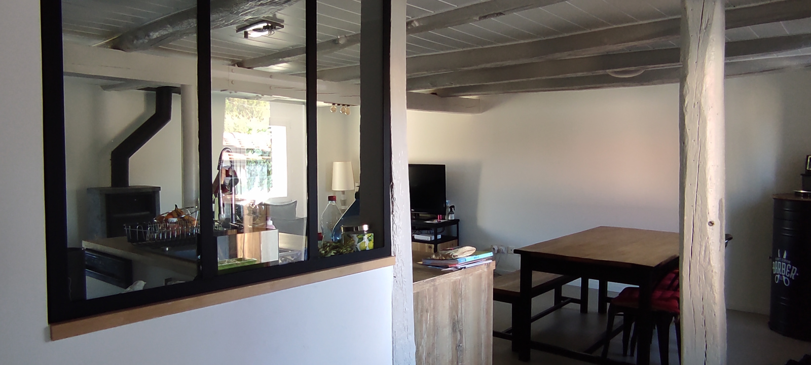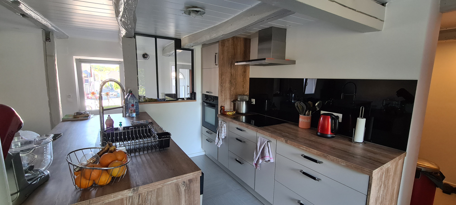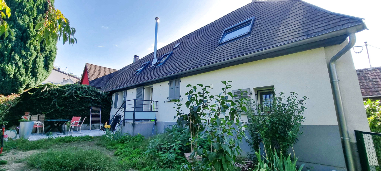 Coquette maison de village rénovée accolée d'un côté, idéalement située entre l'hyper centre de Rixheim et les champs. Cette maison de 90 m2 env. offre un espace de vie traversant avec une cuisine ouverte, récente et fonctionnelle, chauffé par un poele à bois neuf. Deux grandes chambres, un espace bureau et un espace dressing. Une salle de bains spacieuse (douche et baignoire) et un WC indépendant.