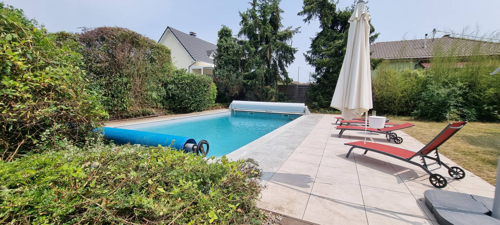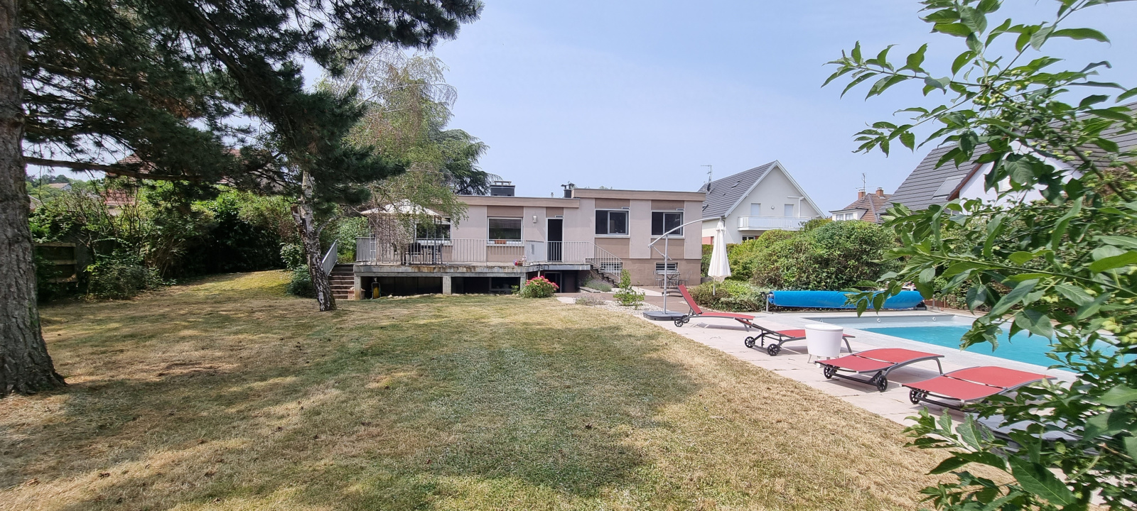 Superbe parcelle de terrain, clos et paysagés: arbres cinquentenaires, piscine au sel 5x10, espace détente, sur 19.5ares.