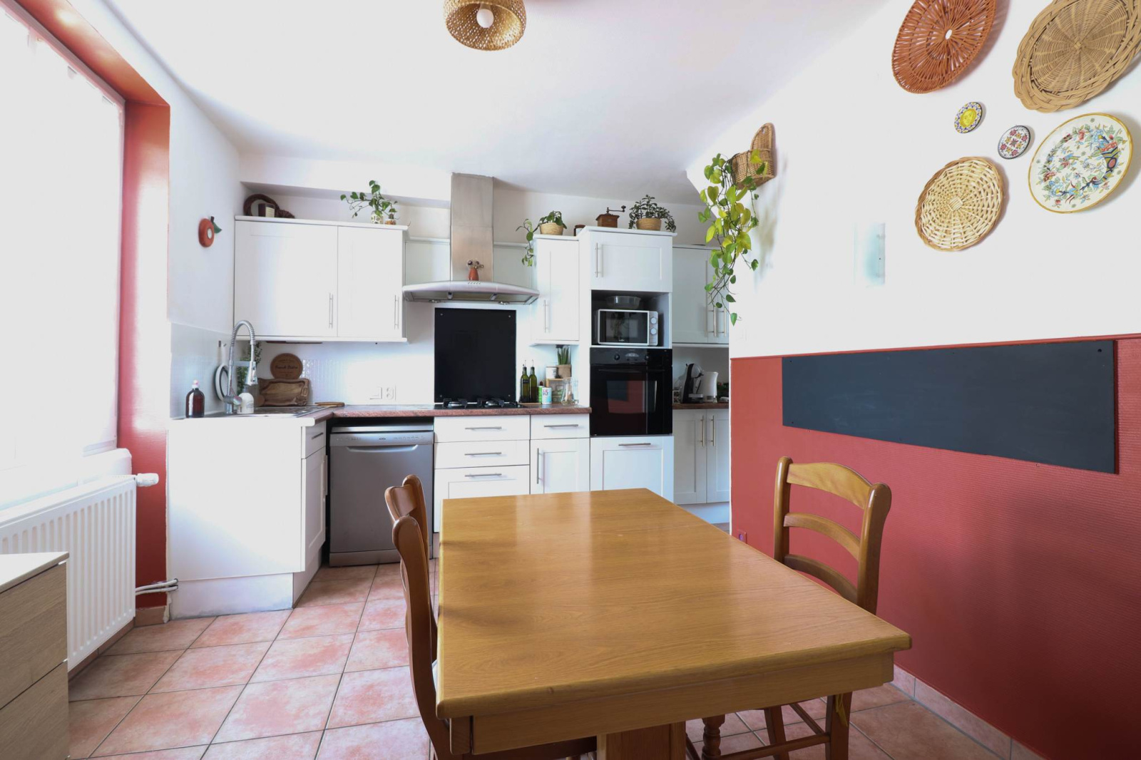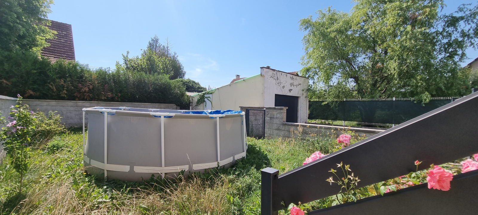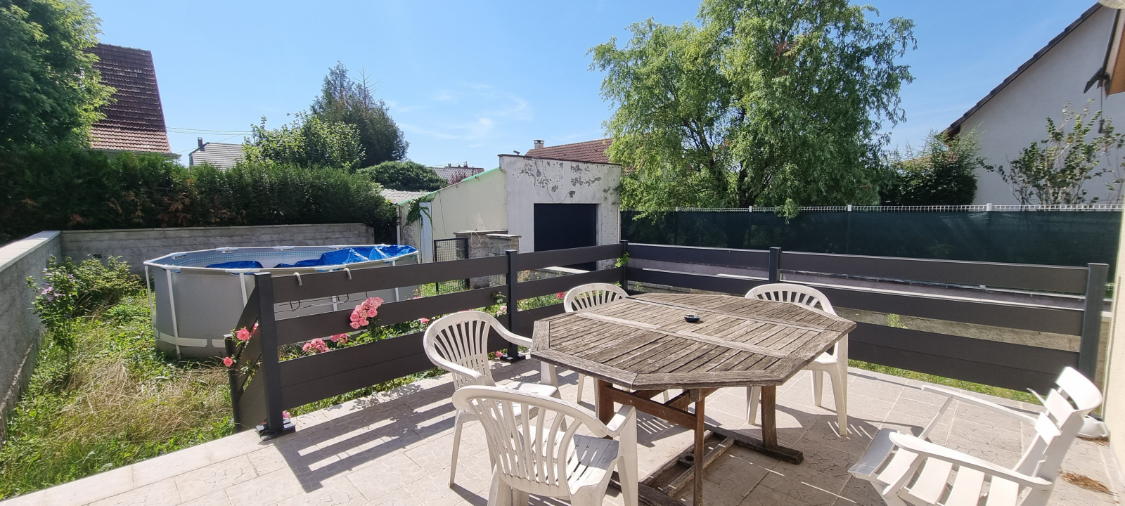 maison jumelée, 5 pièces, grandes cuisine et sdb équipées, séjour avec accès terrasse, 4 chambres, dont 1 en enfilade idéale pour bureau, sous sol carrelé, garage, cour, jardin, sur 2.74ares clos. chauffage gaz, nombreux travaux effectués, idéal 1er achat!