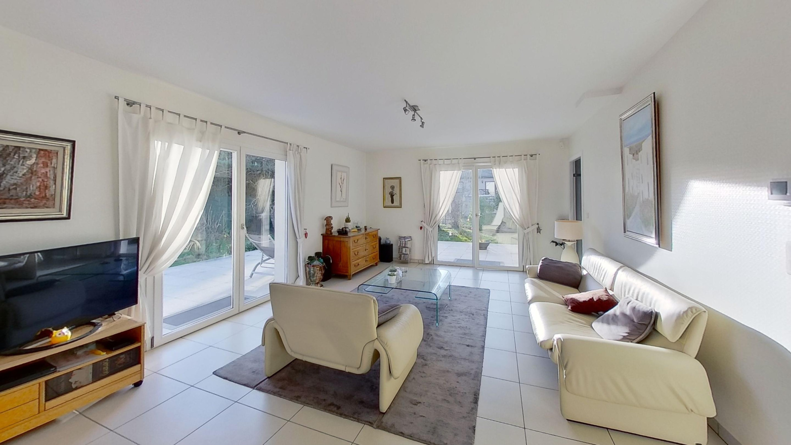Cette maison construite avec des matériaux de qualité dispose, d'un séjour clair de 39m² prolongé par une grande terrasse accessible directement, vaste cuisine équipée leicht, 3 chambres dont 2 volumineuses de+ de 20m², dressing, salle de bain équipée avec douche xl et baignoire. Le sous sol dispose d'une buanderie et d'une cave. Garage de plain pied, 2 parkings. Joli jardin sans vis à vis clos et arborés, sur 4.35 ares.
