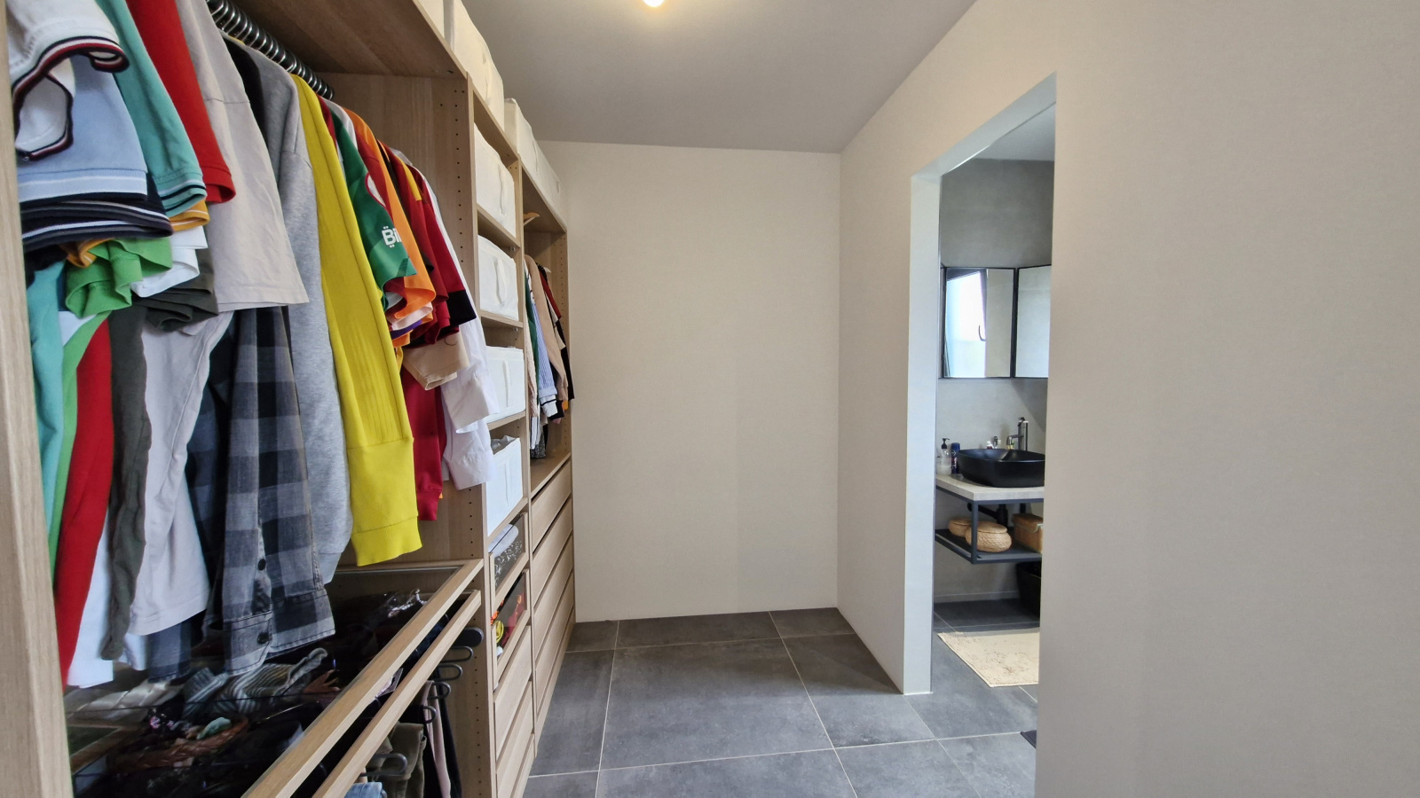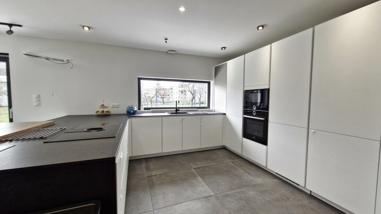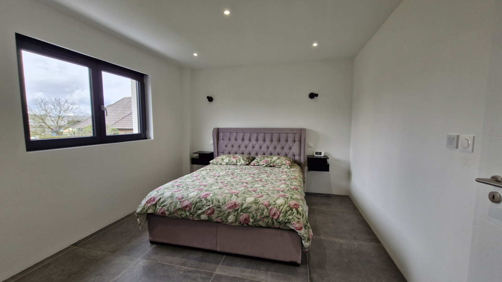 Cette villa sobre et élégante propose au rez de chaussée: une vaste pièces de vie traversante de 60m²; cuisine équipée américaine épurée, séjour avec large baie vitrée, chambre, salle d'eau équipée, cellier, vestiaire, buanderie, garage 2 voitures accolé.