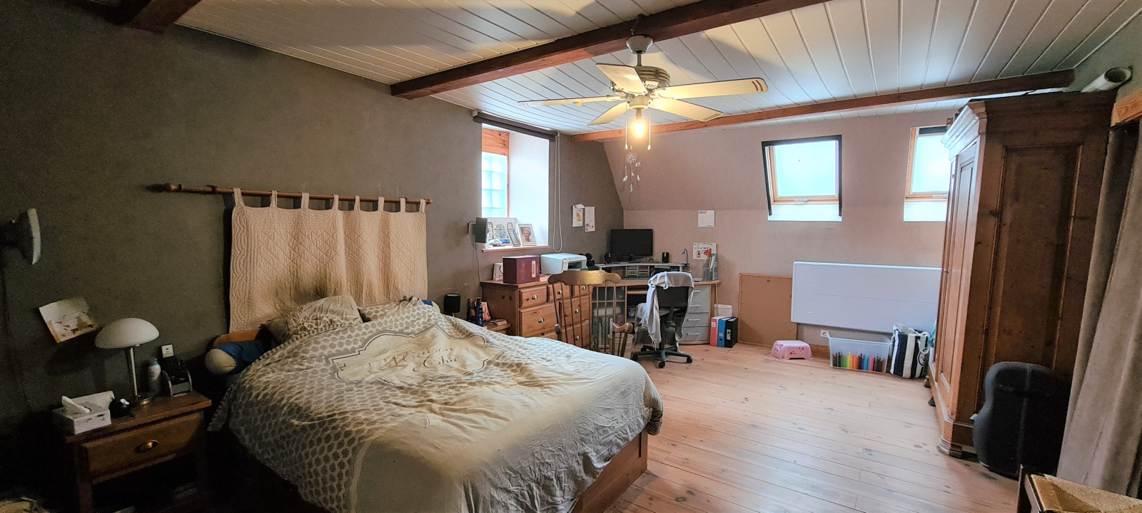 Venez découvrir dans une ancienne grange réhabilitée ce duplex atypique de 115m² carrez. Situé au 1er et dernier étage, il comprend une entrée donnant sur une grande pièce de vie avec cuisine ouverte de 48m², une spacieuse chambre parentale avec dressing, une salle d'eau avec coin buanderie, un WC et un cellier. A l'étage on retrouve un bureau, une mezzanine, 2 belles chambres de 16m² et 17m² avec de nombreux rangements intégrés et une salle de bain. Le bien dispose d'un grenier offrant de multiples possibilités ( stockage, aménagement d'une pièce, terrasse...), parking.
