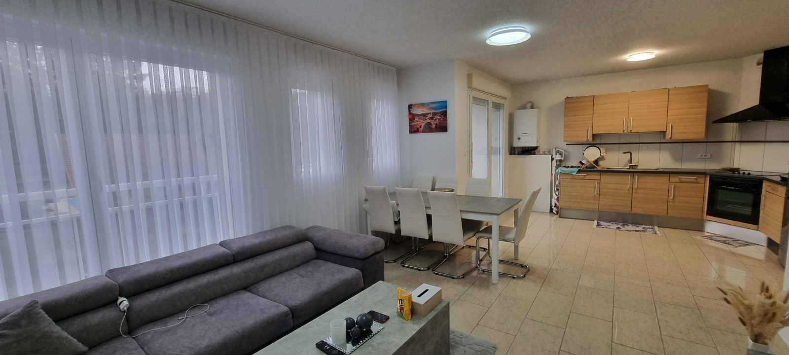 Belle pièce de vie lumineuse de 31m²,bénéficiant d'une cuisine équipée ouverte, d'une terrasse accessible par une large baie vitrée. 2 chambres, salle de bain éq (douche et baignoire), wc, parking privé couvert, chauffage individuel au gaz récent.