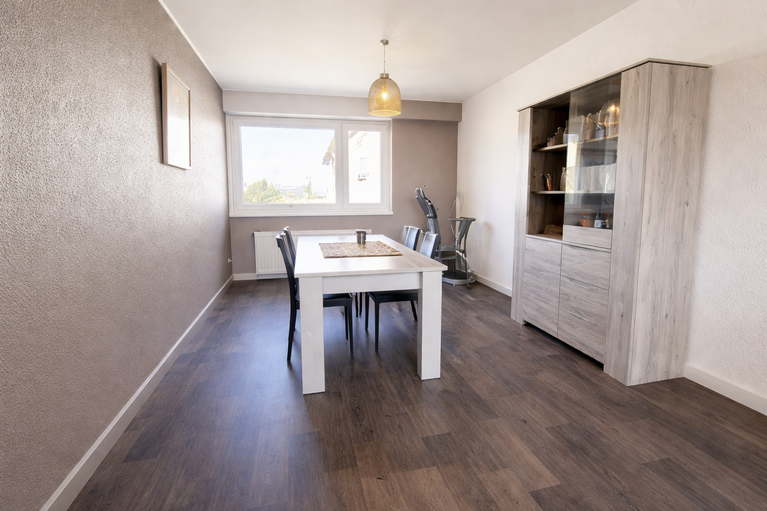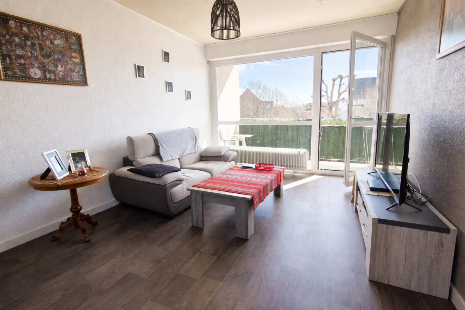 Lumineux et traversant cet appartement dispose d'un séjour volumineux de 33m² (divisible pour 2e chambre), balcon ensoleillé avec vue dégagée, chambre, grande cuisine meublée avec cellier, salle d'eau équipée, wc, cave, garage, facilité de parking.