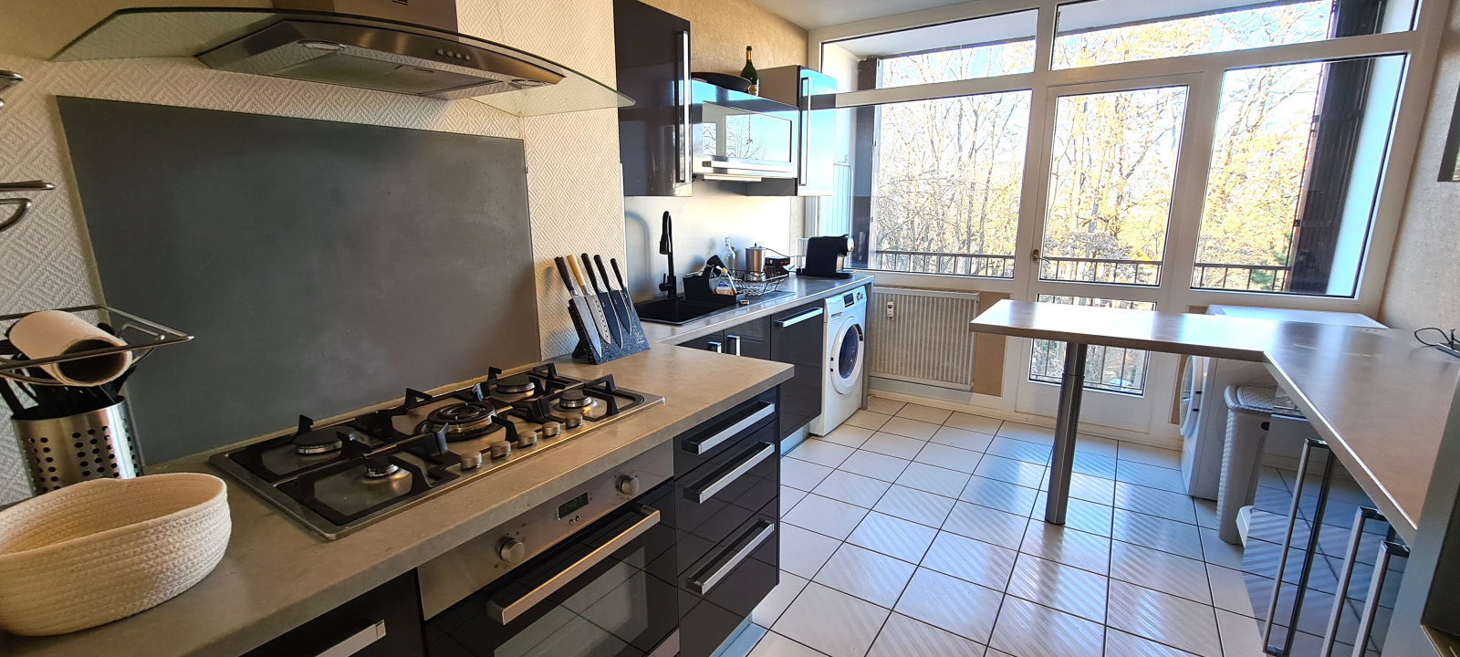 Bel appartement 4p traversant de 81m² situé au 3ème étage avec ascenseur, proche de toutes commodités dans une copropriété bien entretenue. Il comprend une entrée avec placard intégré, une grande cuisine équipée avec balcon et vue sur la verdure, un lumineux séjour de 28m², avec baie vitrée, balcon exposé sud, 3 chambres, une salle de bain équipée, un WC, une cave, parking libre.