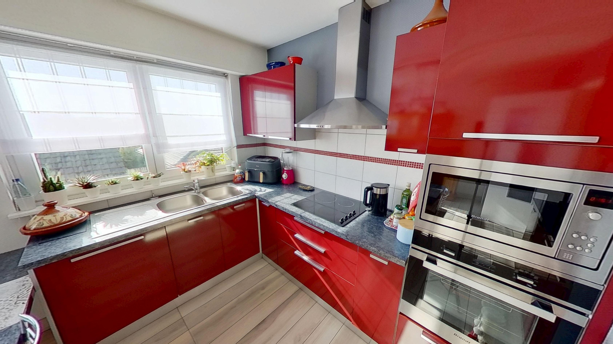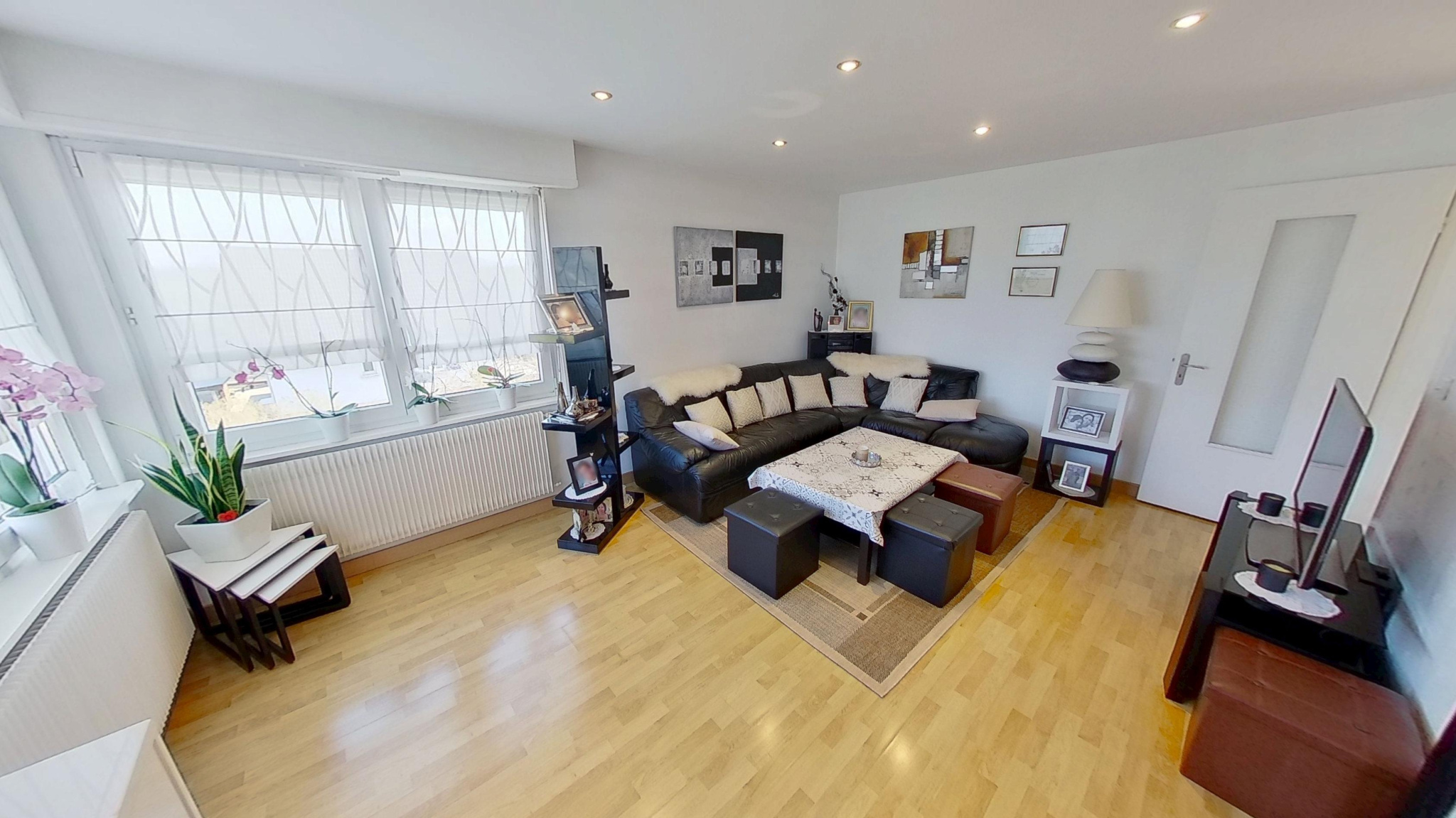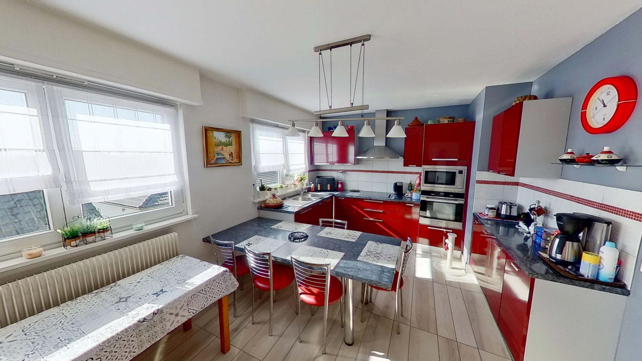 Venez découvrir ce lumineux appartement traversant 4p de 90m² situé au 1er et dernier étage dans une petite copropriété de 4 appartements. Il comprend une entrée, une spacieuse cuisine équipée avec coin repas, un salon/séjour de 31m² donnant sur un balcon, deux chambres de 13 et 14m², une salle de bains équipée, un WC suspendu, une grande cave, un garage avec électricité et porte motorisée et une place de stationnement privative.