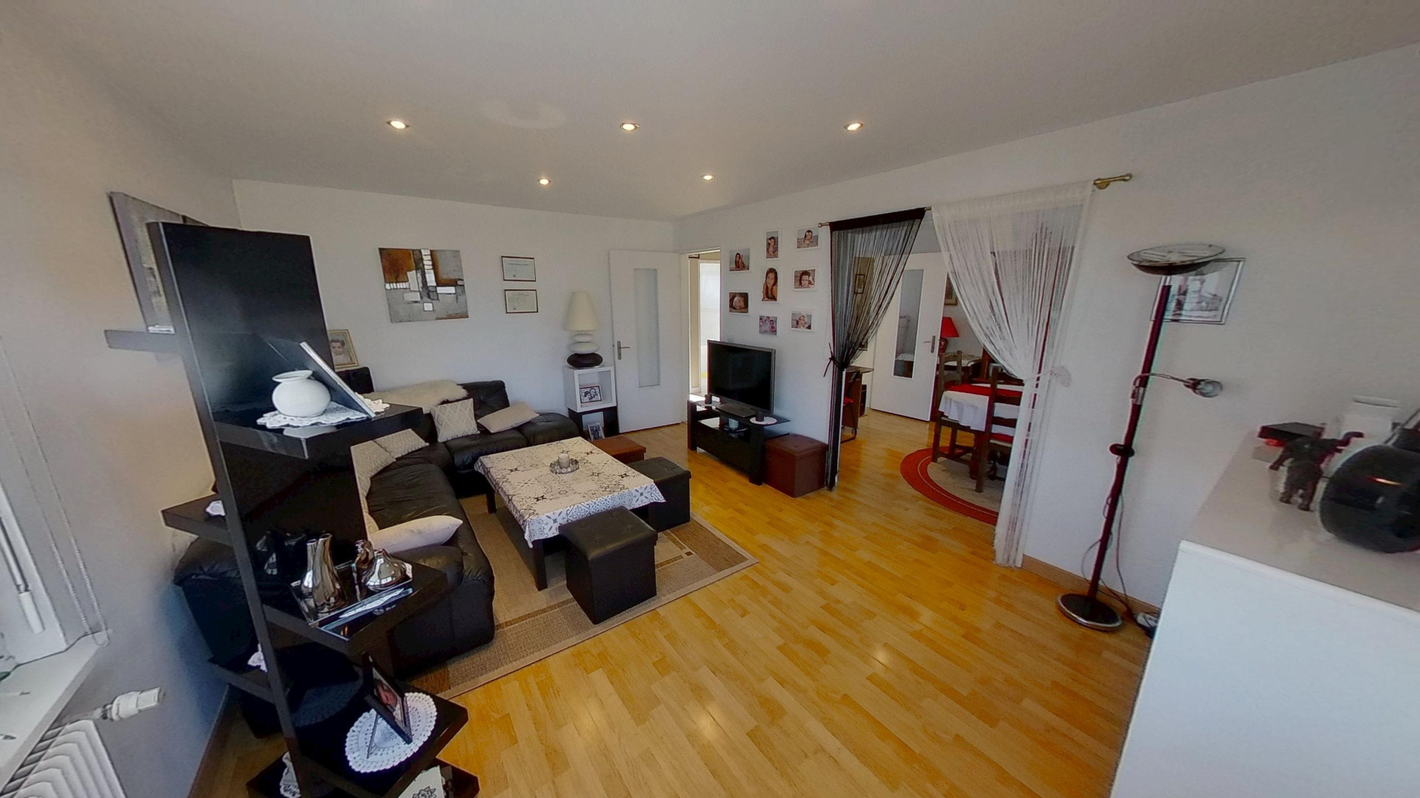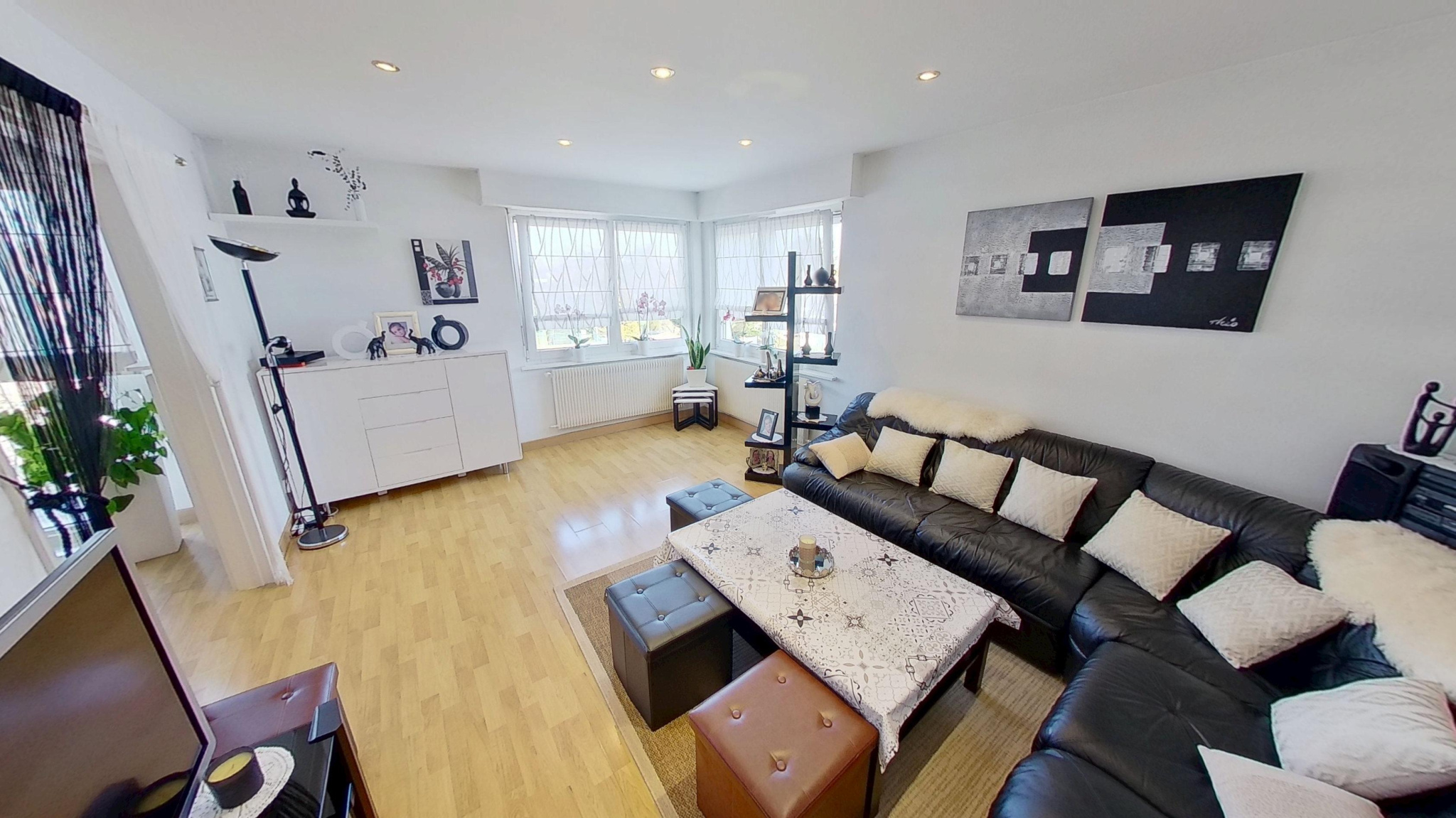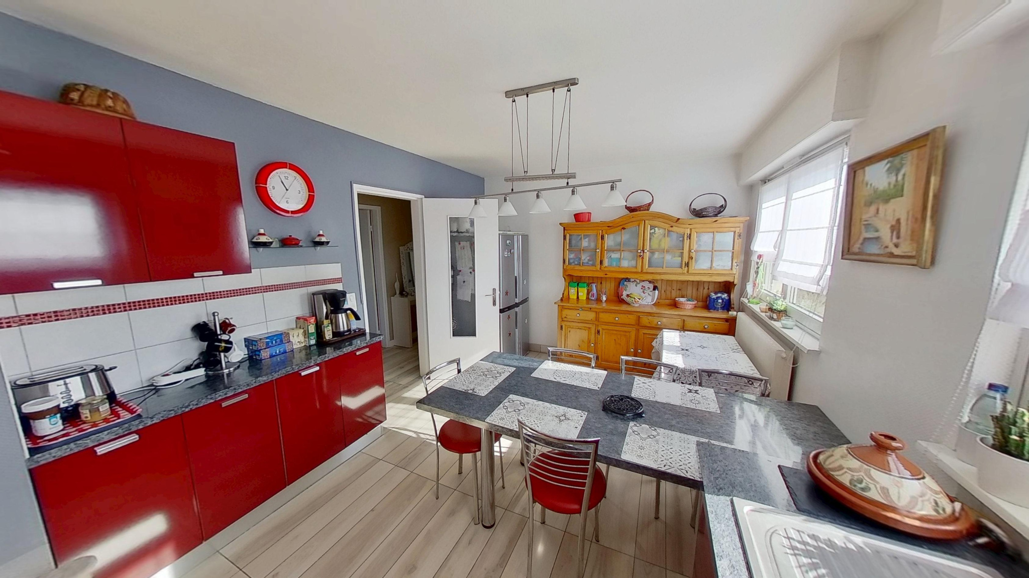 Venez découvrir ce lumineux appartement traversant 4p de 90m² situé au 1er et dernier étage dans une petite copropriété de 4 appartements. Il comprend une entrée, une spacieuse cuisine équipée avec coin repas, un salon/séjour de 31m² donnant sur un balcon, deux chambres de 13 et 14m², une salle de bains équipée, un WC suspendu, une grande cave, un garage avec électricité et porte motorisée et une place de stationnement privative.