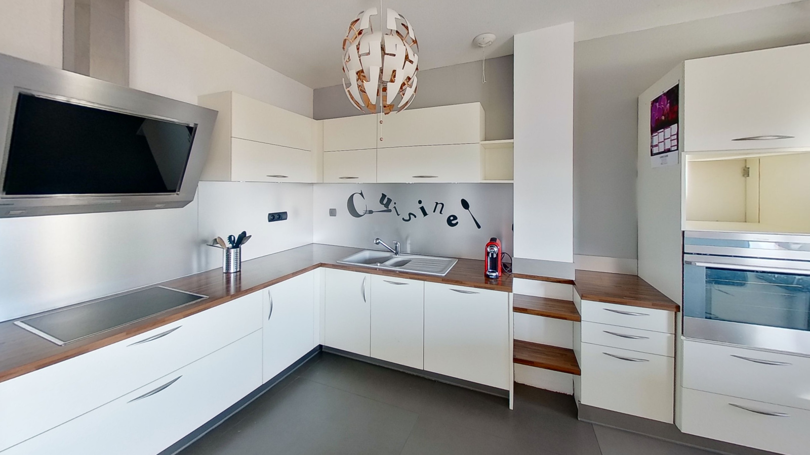 Le bien comprend également une place de parking extérieur, une cave et un garage en sous-sol.