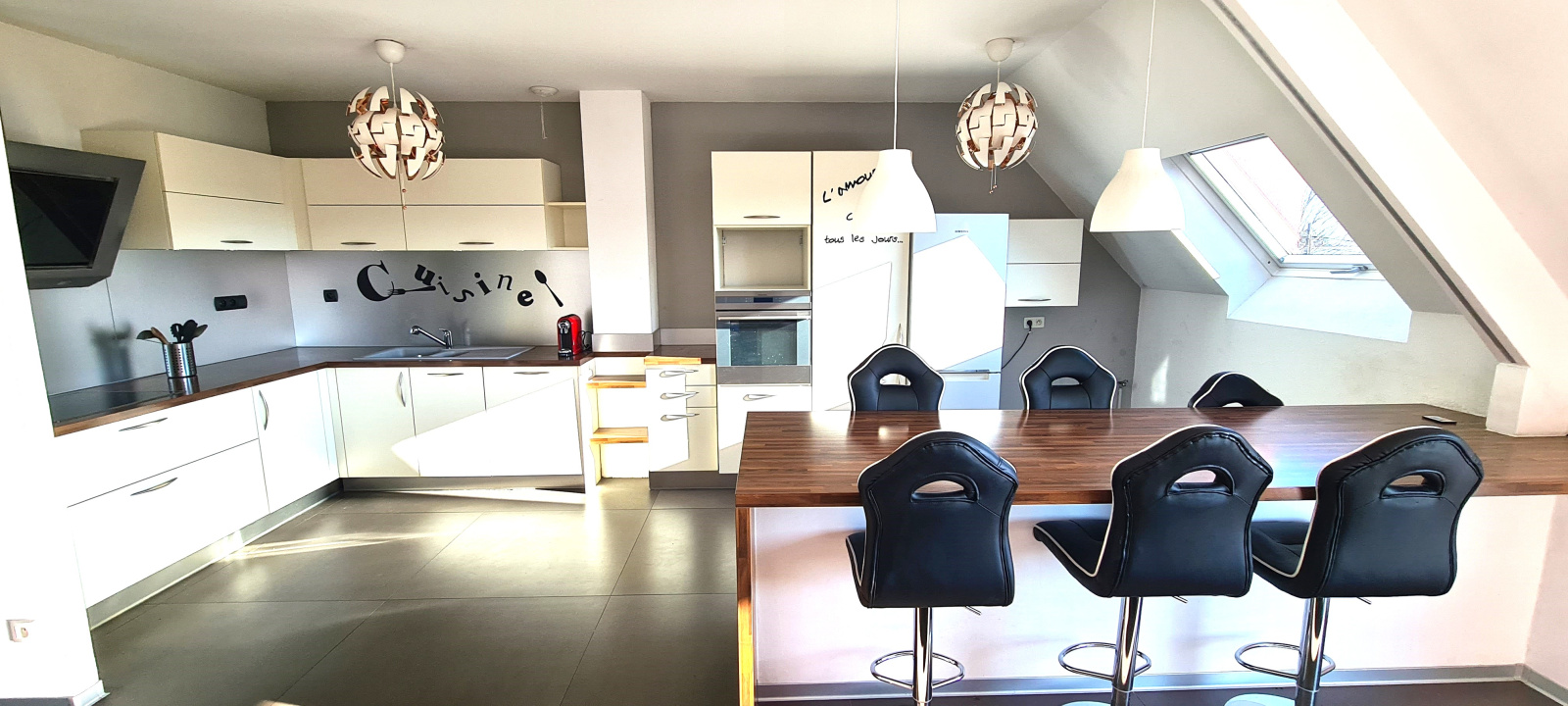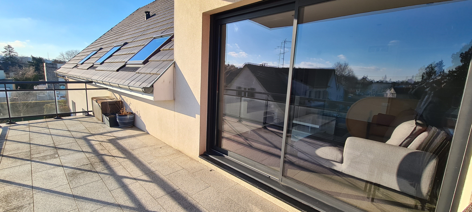 Situé dans une petite copropriété au dernier étage avec ascenseur, bel attique de 103m² comprenant une entrée avec placard intégré, une spacieuse pièce de vie d'environ 40m² comprenant une cuisine équipée ouverte sur le séjour baigné de lumière avec accès à une grande terrasse de 18m² exposé sud. Côté nuit, trois chambres d'environ 14m² chacune, une salle de bains avec douche et toilette et une salle d’eau avec toilette.