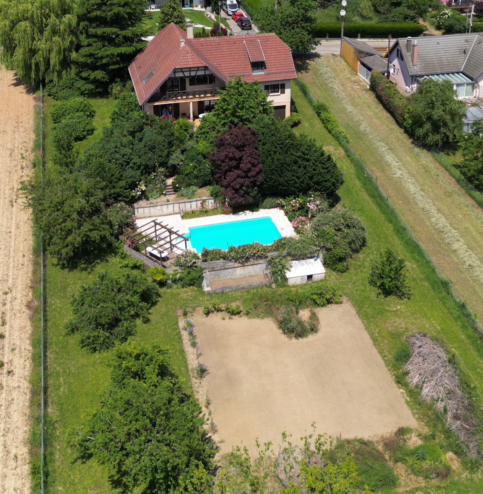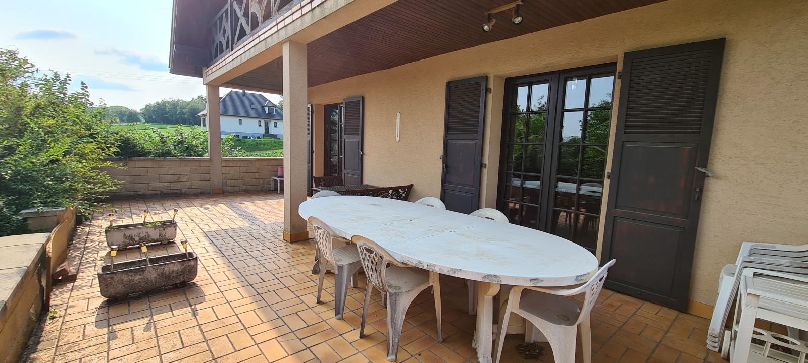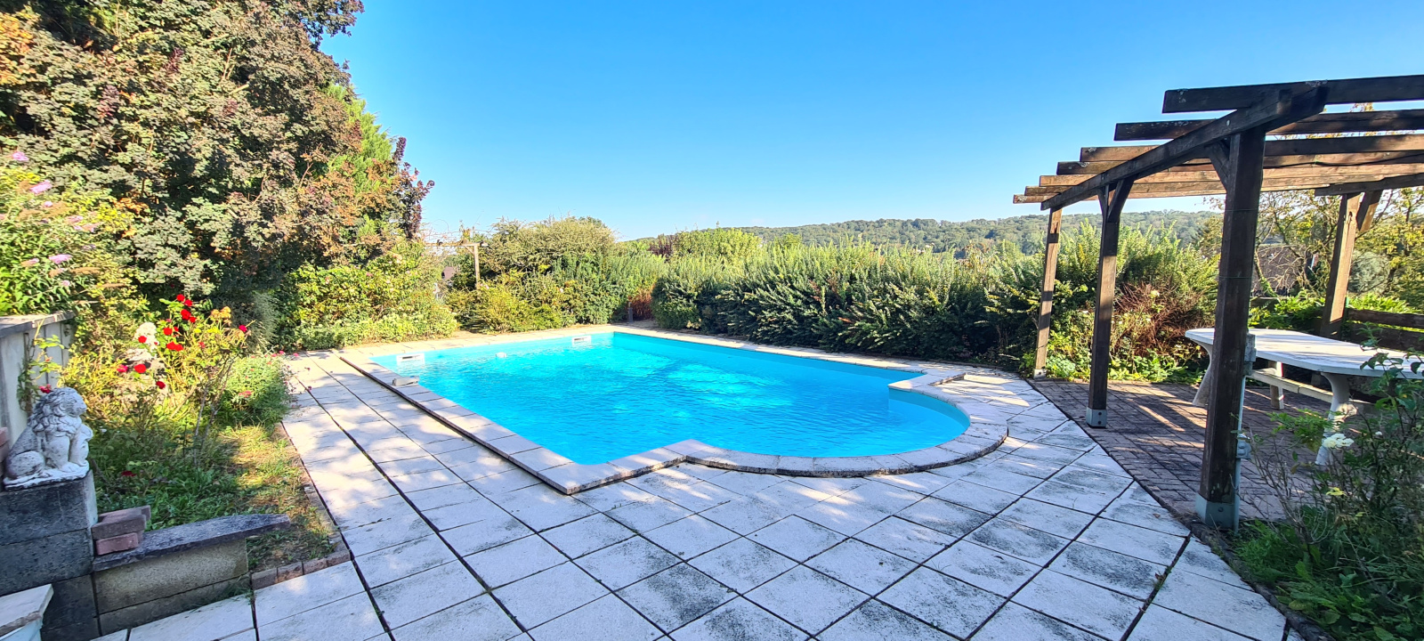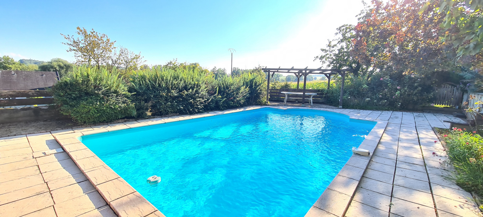 L'extérieur est magnifiquement arboré d'arbres fruitiers, d'une roseraie etc... On trouve également une piscine sans aucun vis-à-vis, deux terrasses, un potager le tout sur un terrain clôturé d'environ 31,32 ares.