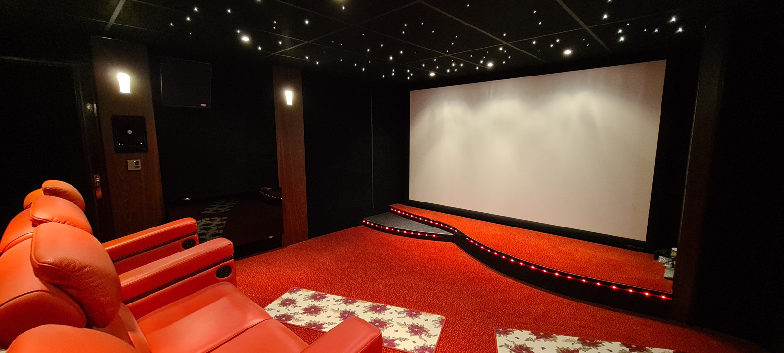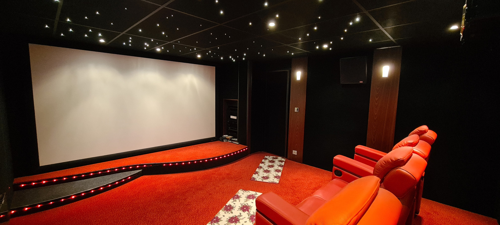 Sous-sol avec un double garage, un garage pouvant accueillir un camping-car, une cave à vin, une salle de cinéma haut de gamme, une buanderie, une pièce de stockage pour le bois.