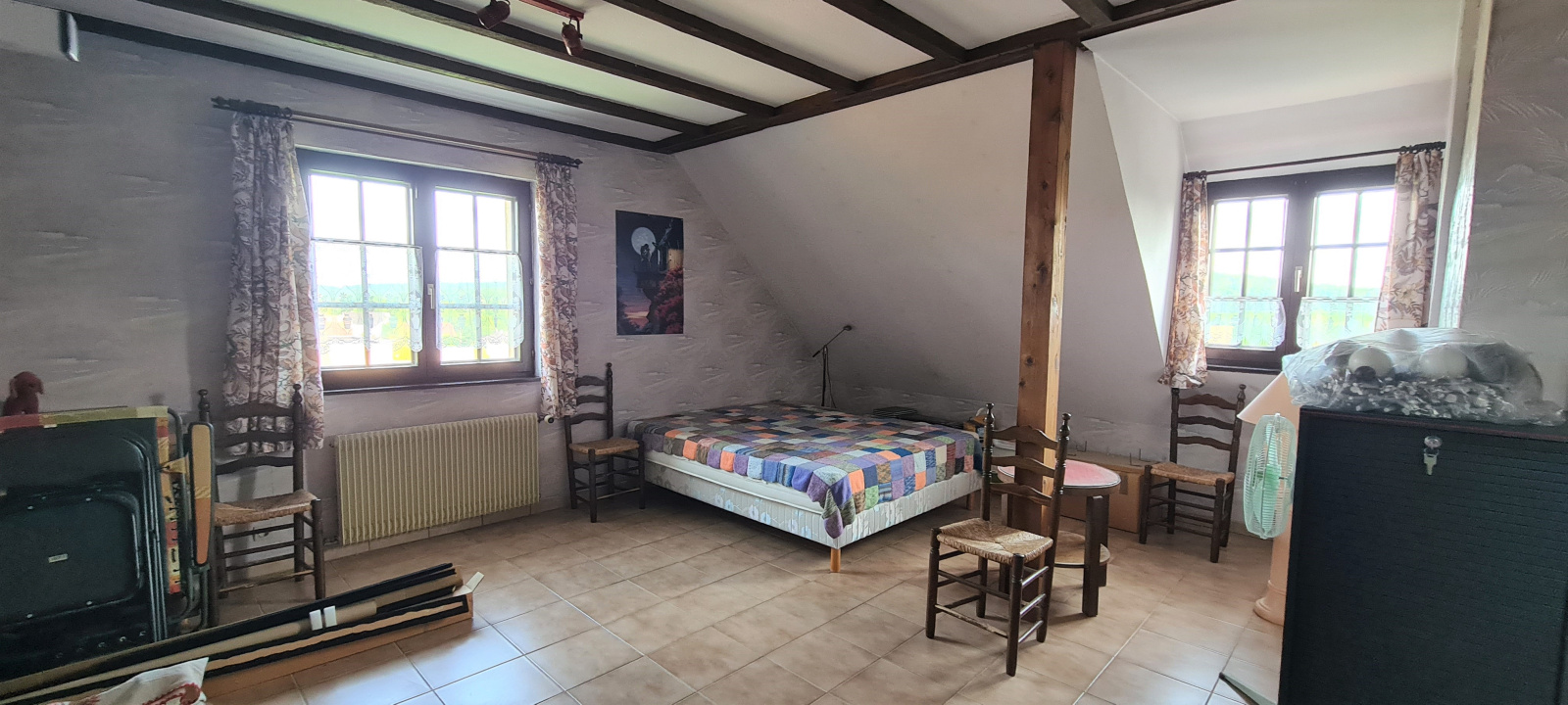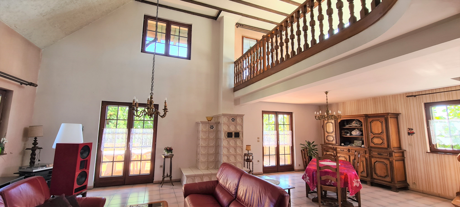 Elle comprend au rez-de-chaussée une vaste entrée, un salon/séjour de 63 m² avec une belle hauteur sous-plafond de 6m avec accès sur la terrasse, une cuisine séparée, trois chambres et une salle d'eau avec un toilette. L'étage comprend une suite parentale avec douche, baignoire et toilette, une grande chambre traversante, une mezzanine donnant sur un balcon.