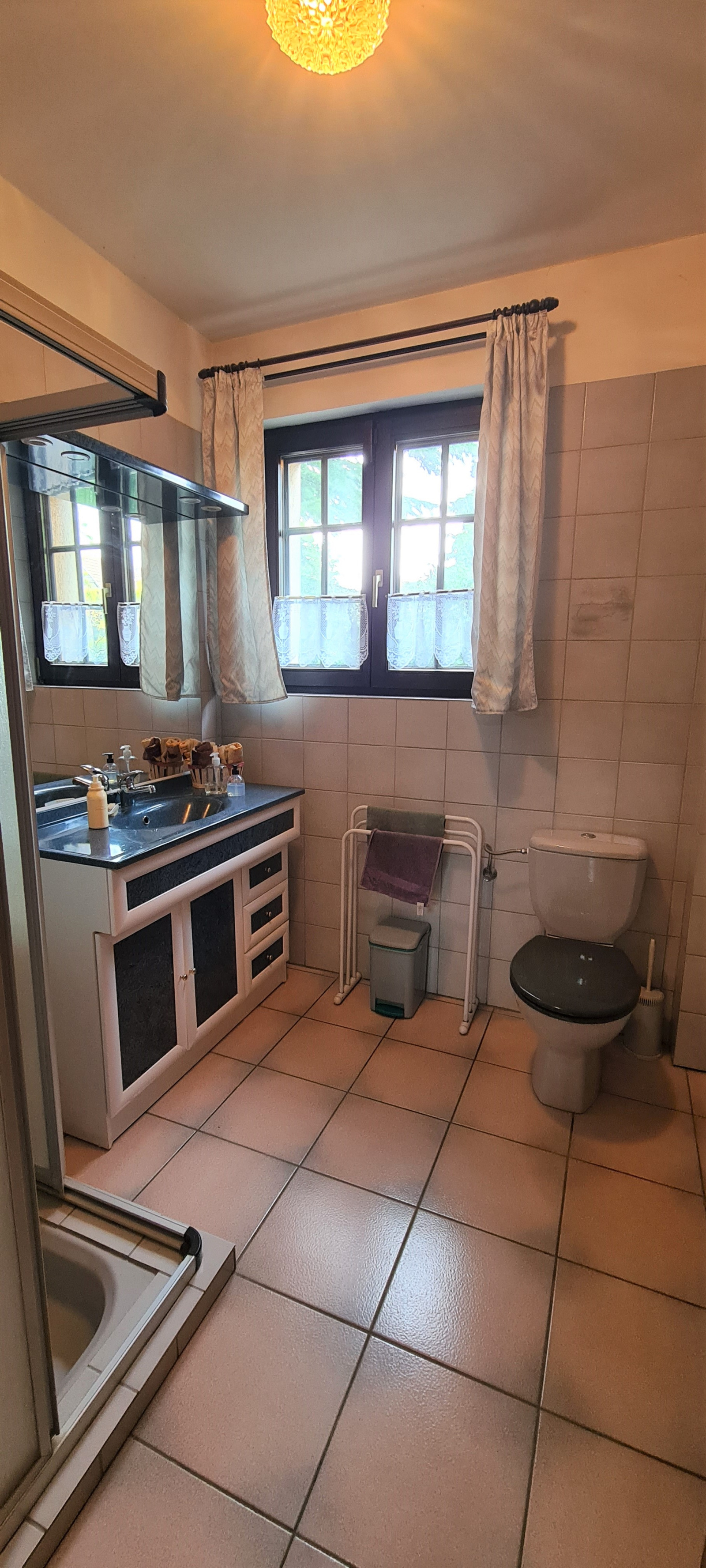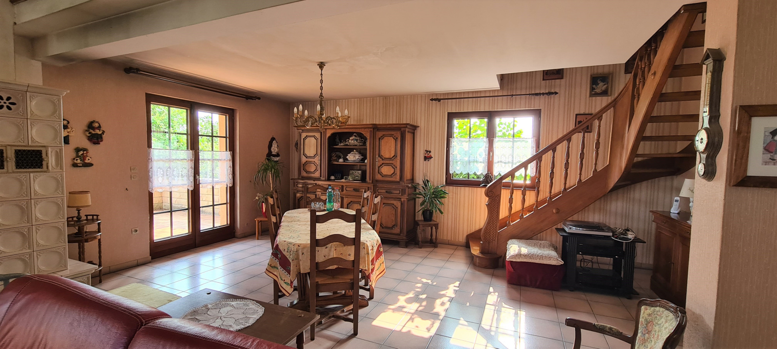 Située sur les hauteurs du village dans un cadre champêtre, belle maison d'architecte de 1988, 8pièces, 248m².