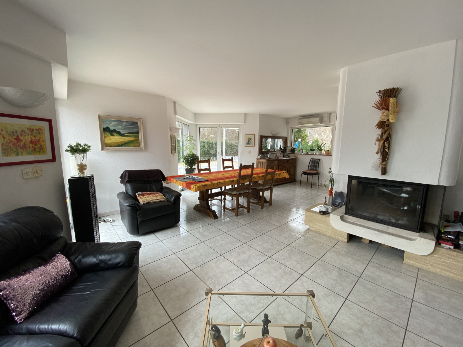 Chauffage au sol, climatisation, PAC par géothermie, panneaux photovoltaiques. Garage double avec atelier, terrain pavé et clôturé, portail motorisé. Piscine waterair. Construction de qualité, excellent état général, vivable de plain-pied. La maison est idéalement située proche des axes autoroutiers, écoles et commerces.