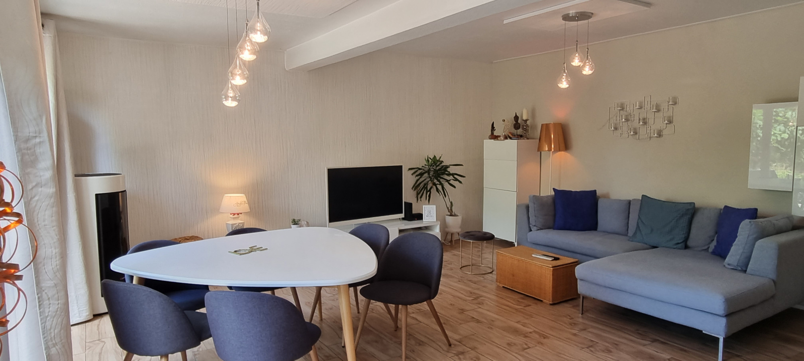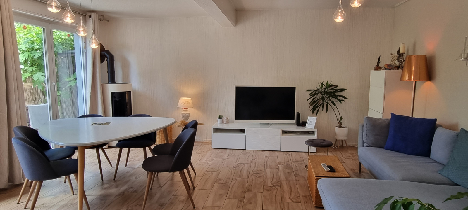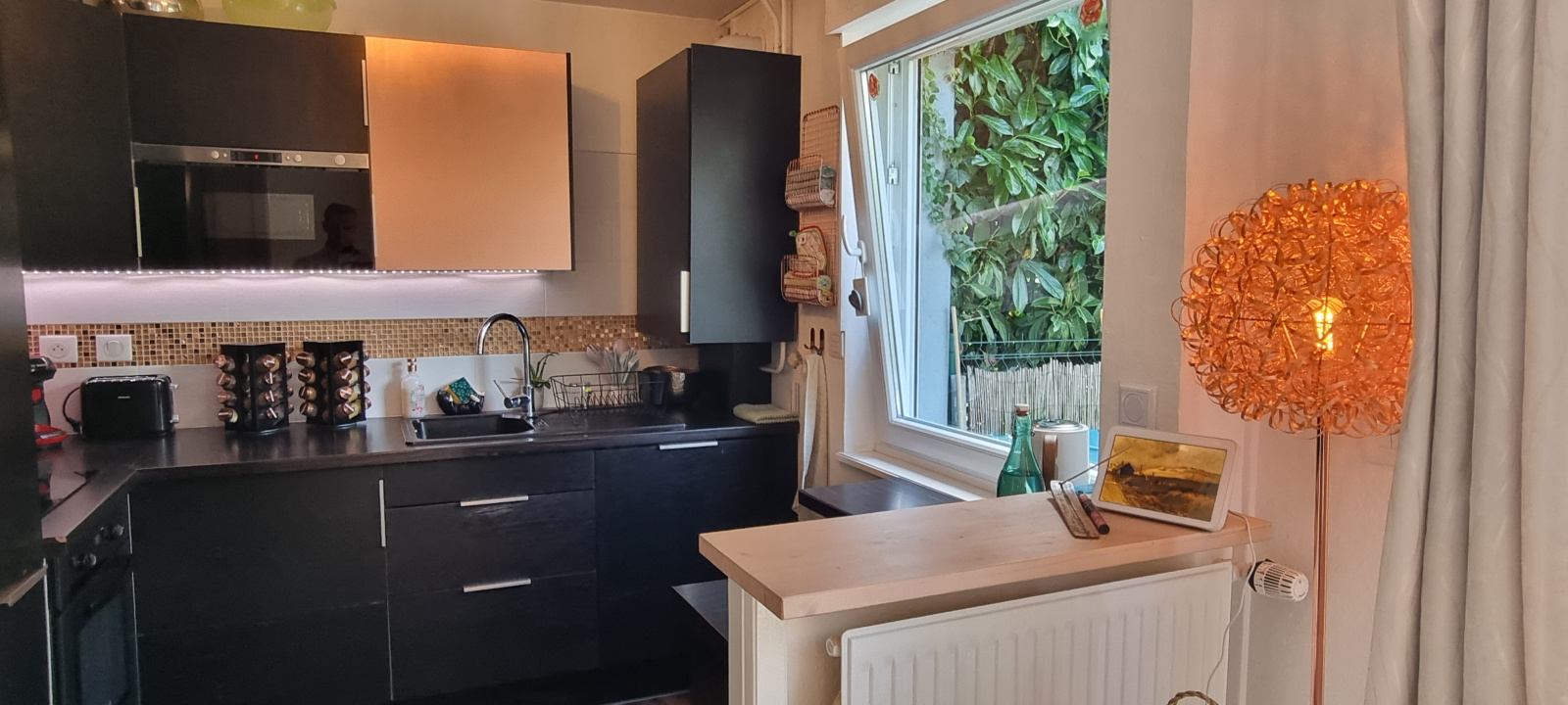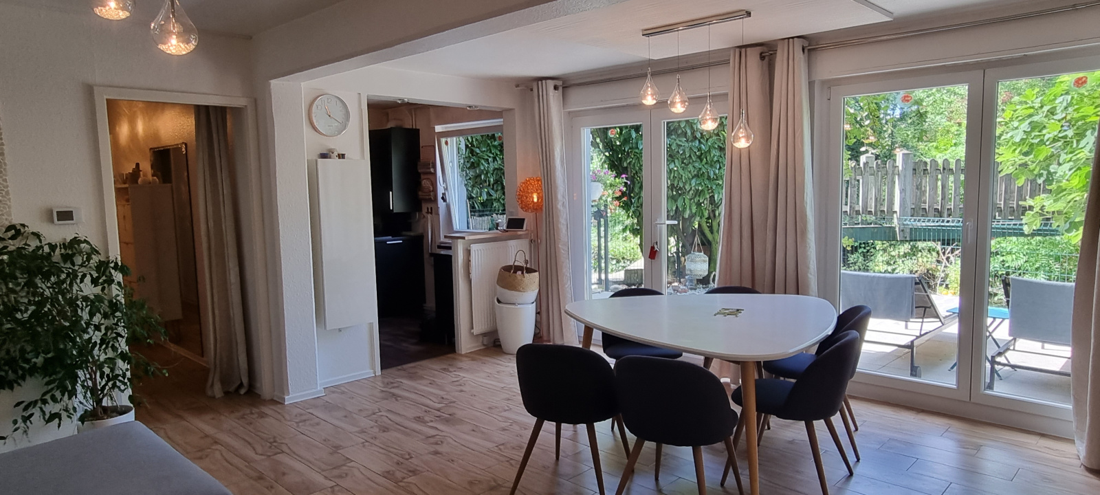Dans un cadre exceptionnelle de nature buccolique et à 10 minutes du centre ville de mulhouse, superbe 3p en rez de jardin, rénové avec gout, dans petite copropriété sécurisée, 66m².