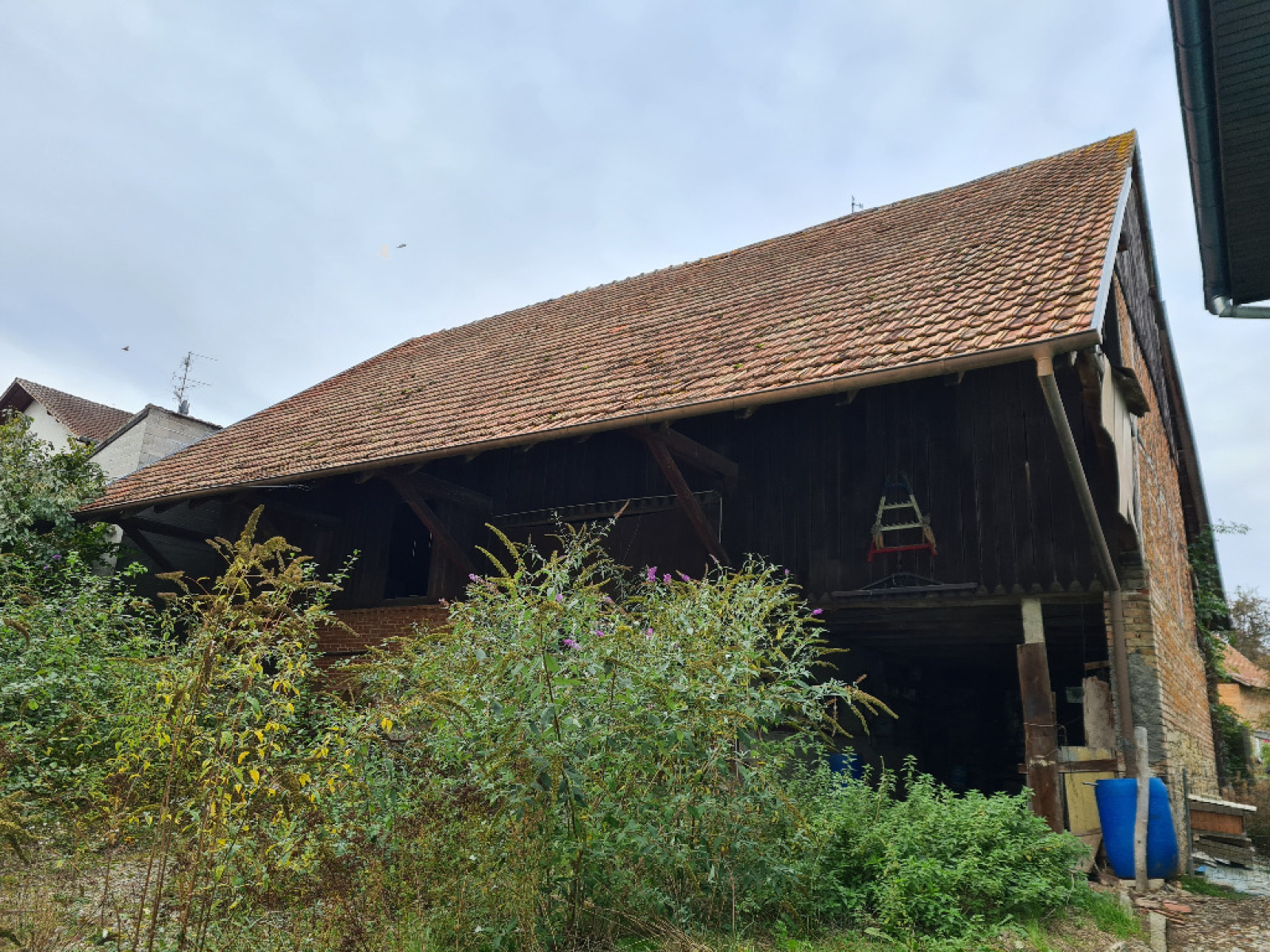 vaste maison alsacienne 7pièces, cuisine, salle de bain, combles aménageables, cave, authentique grange à aménager 140m² sol, au calme, prévoir travaux lourd.