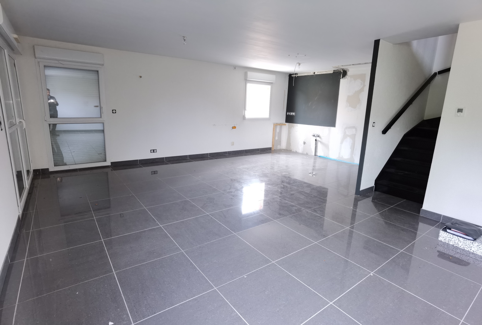 situé au calme, spacieux duplex jardin, 5p, 90m² sol, année 2010, cuisine ouverte sur séjour 33m², 3chambres, salle de bain, terrasse et jardin privatif clos de 100m² env, garage double, prévoir travaux.