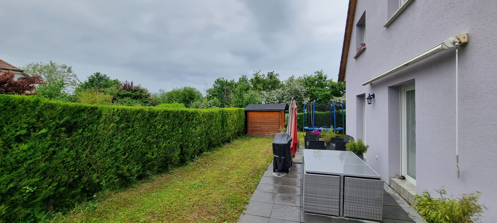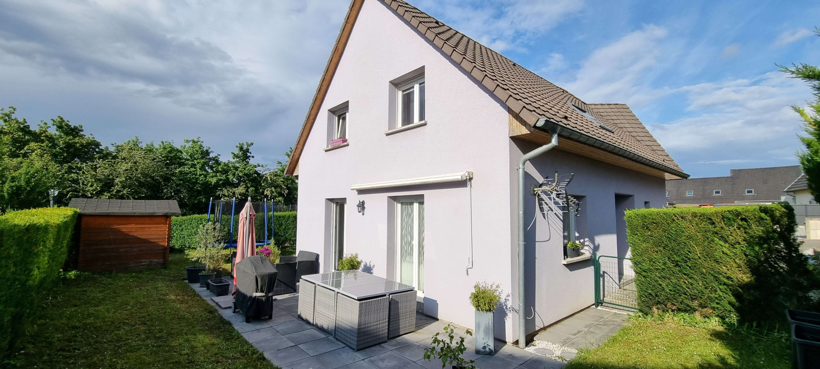 garage accolé, parking, joli jardin intime arboré et clos, sur 285m².