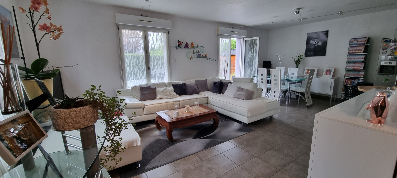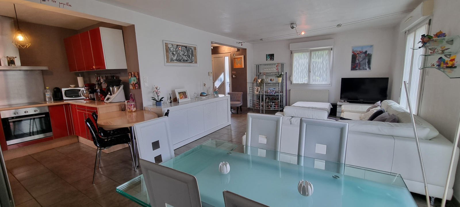 vaste pièce de vie traversante de 42m², accès terrasse et jardin, cellier, wc, mezzanine idéale pour bureau, salle de bain éq (+une seconde améageable), 3 chambres,