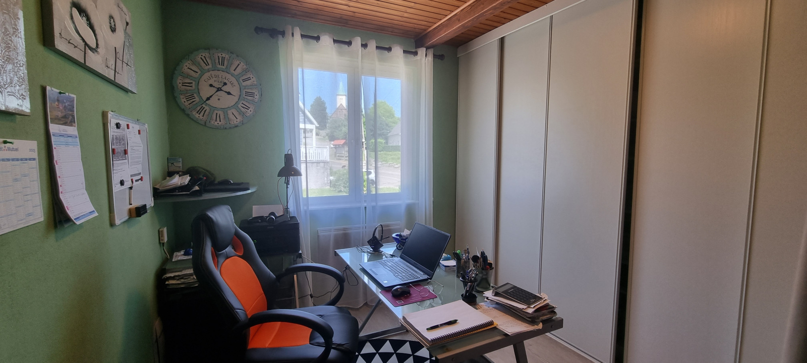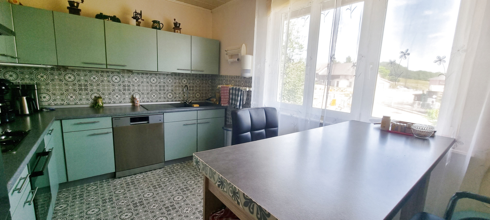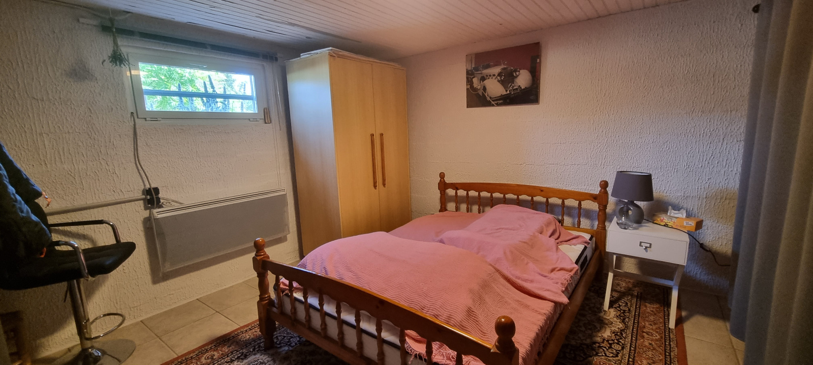 jolie maison plain pied 4/5 pièces, séjour clair avec poele et accès direct sur terrasse, bénéficiant d'une vue sur nature, cuisine et salle d'eau équipées, 2 chambres+1 en entre sol, cave, garage double+1 garage extérieur.