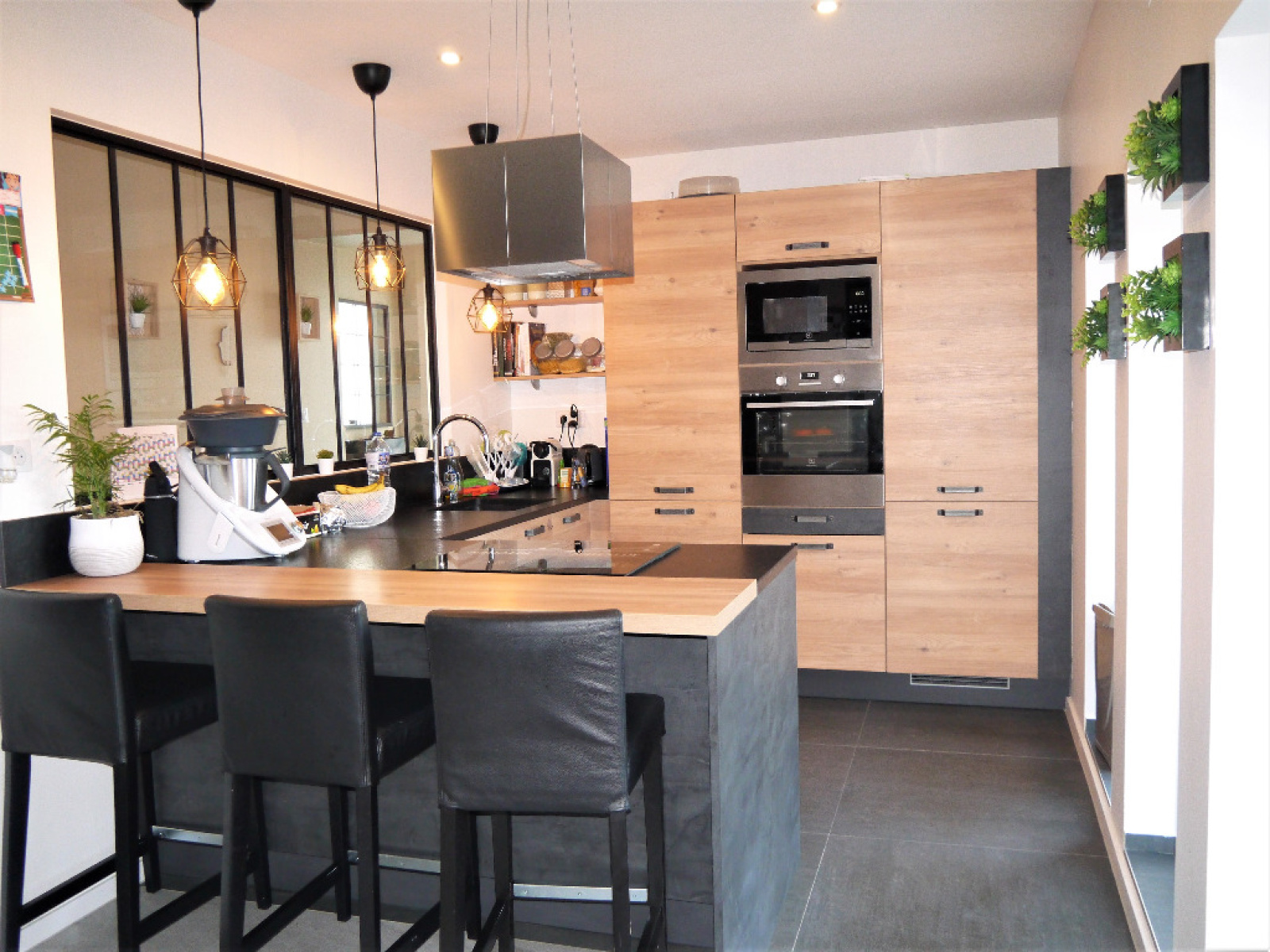 rdc: séjour 40m² baigné de lumière, cuisine équipée contemporaine, esprit indus, suite parentale (grande chambre, dressing, salle d'eau éq),