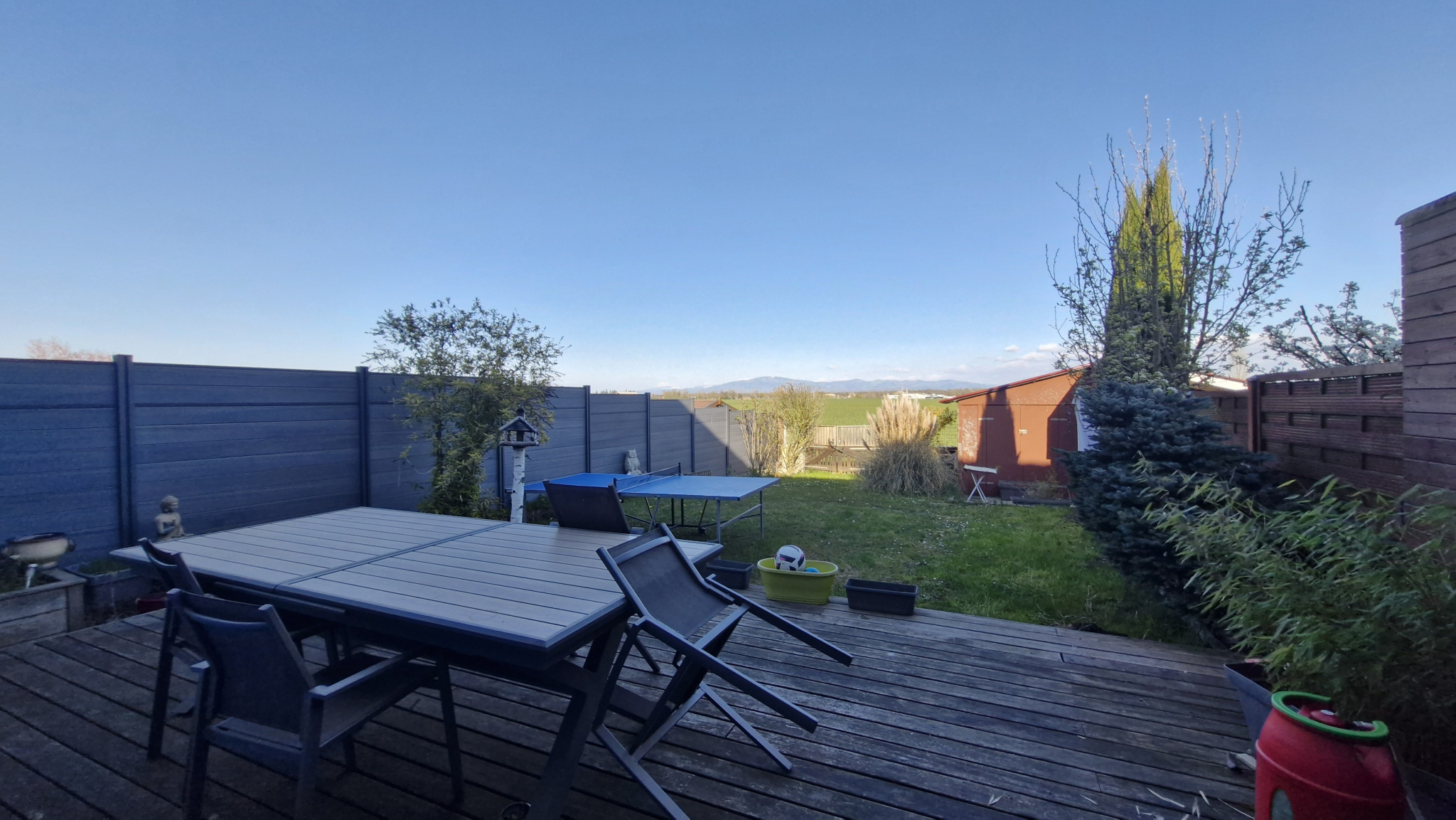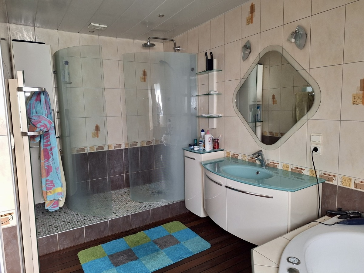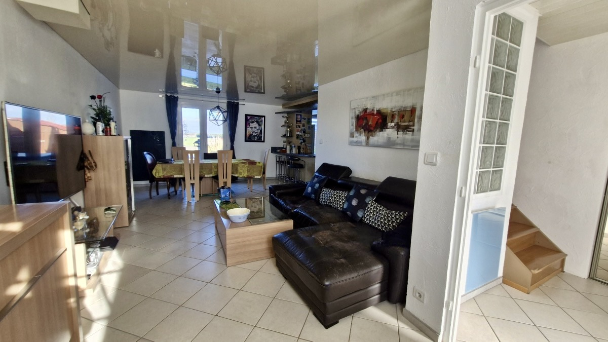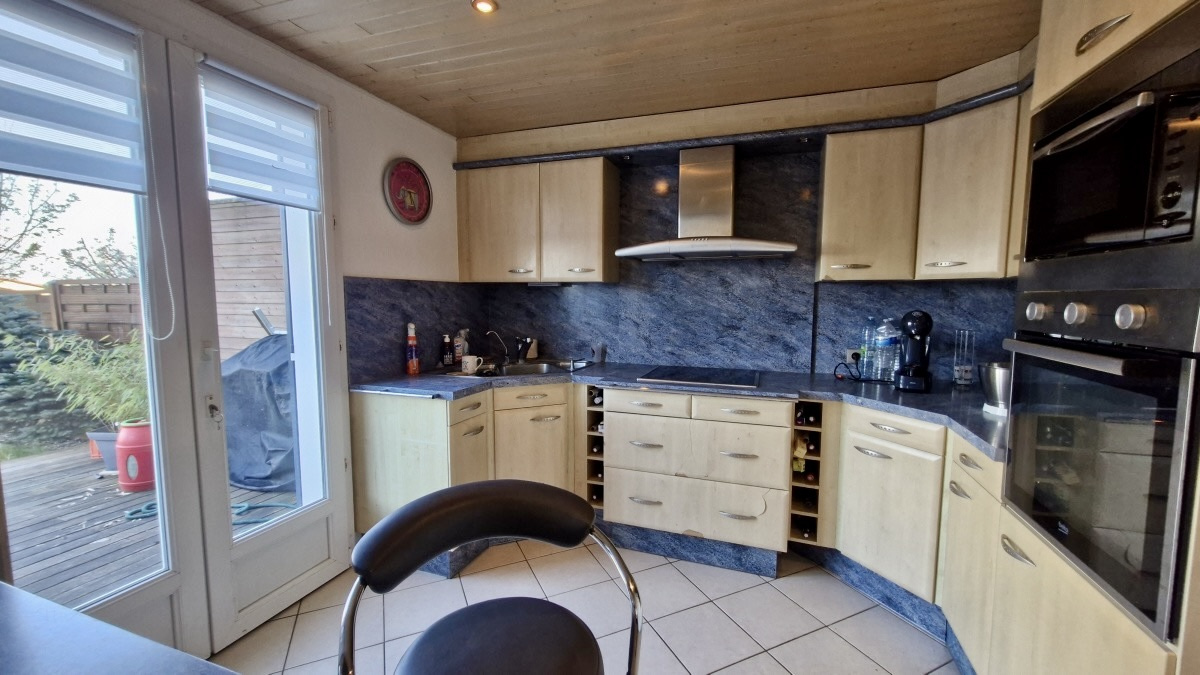 jolie maison jumelée 5 pièces, 115m², cuisine équipée ouverte sur séjour, 3 chambres, grande salle de bain équipée (douche et baignoire balnéo), grand sous sol aménagé, cave, garage aménagé en buanderie, terrasse avec superbe vue dégagée sur champs, jardin, parkings, idéalement situé en quartier résidentiel calme.