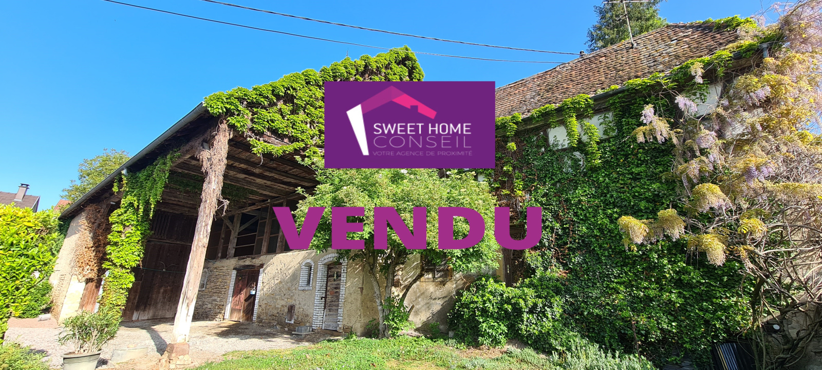 Idéalement située sur la commune, au calme, maison alsacienne d'une surface d'environ 80m² avec une grange attenante d'une surface plancher de 250m².