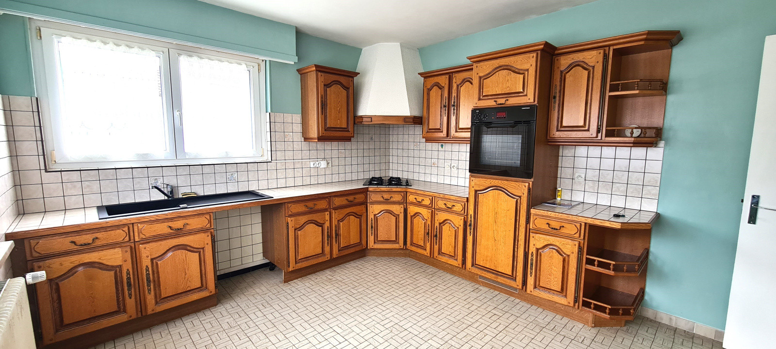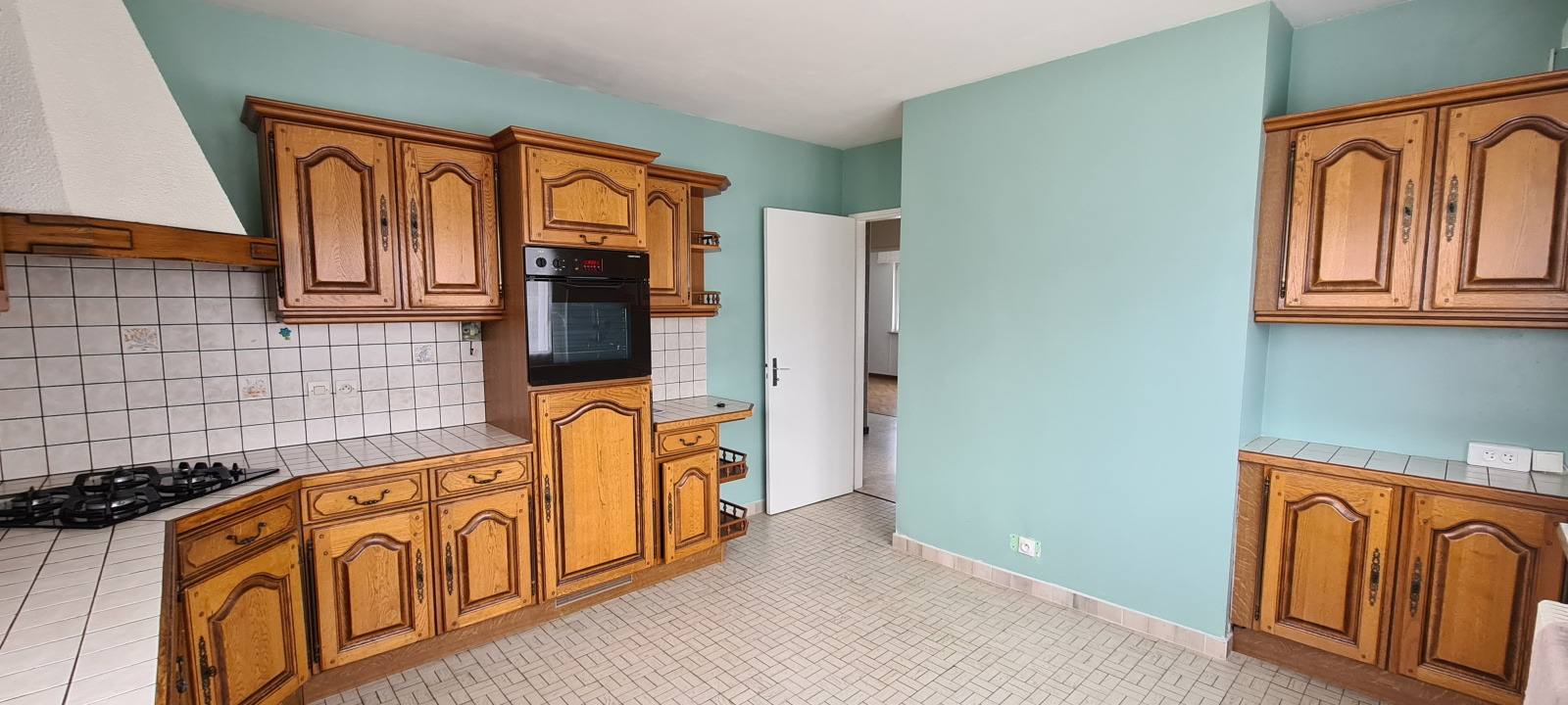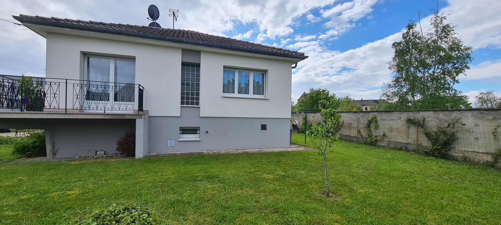 Joli plain pied de 96 m², 5 pièces des années 70 comprenant une entrée, une cuisine séparée, un salon/salle à manger avec accès sur le balcon, deux chambres, une salle d'eau équipée, un WC, un débarras, une penderie.