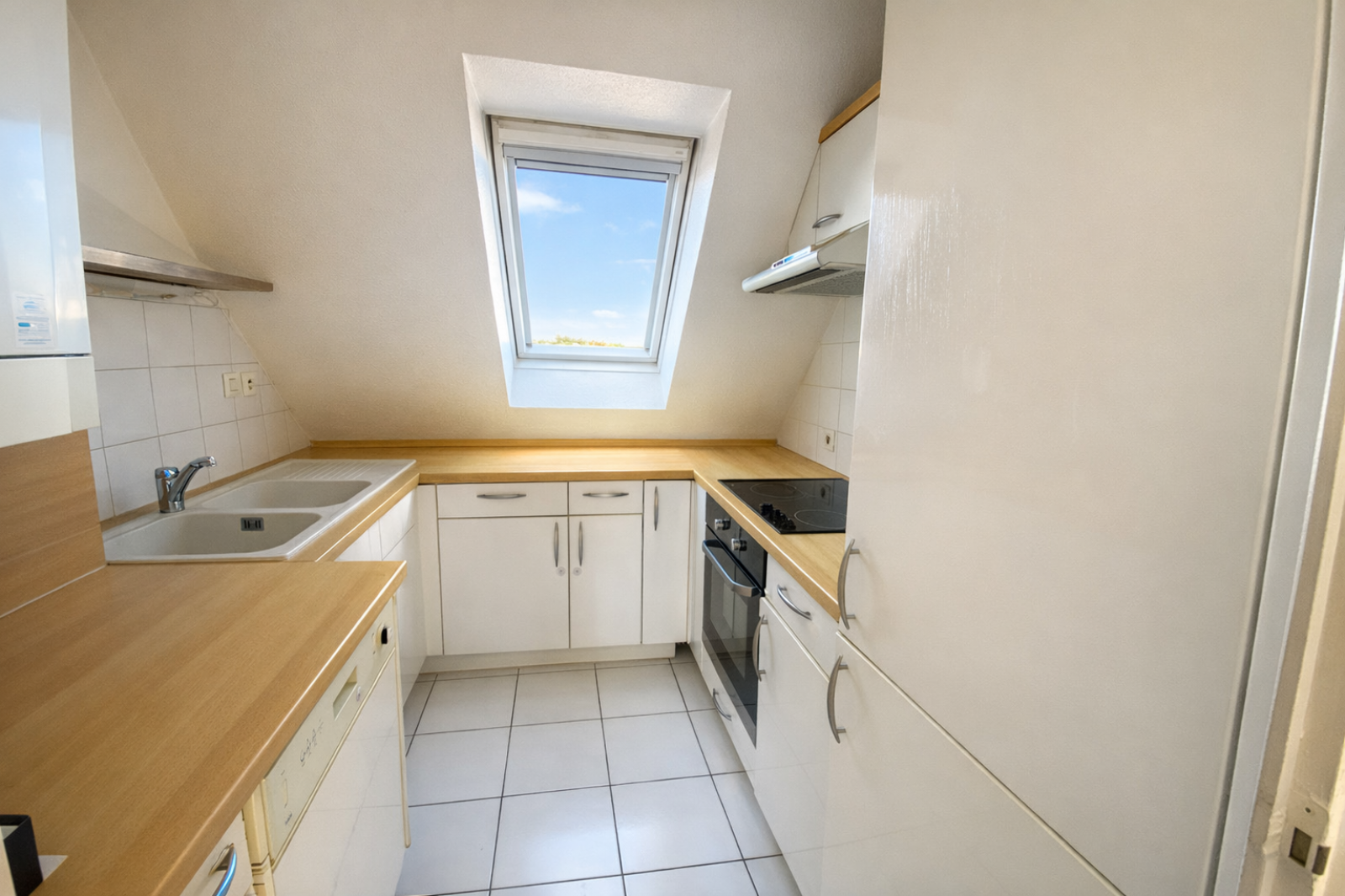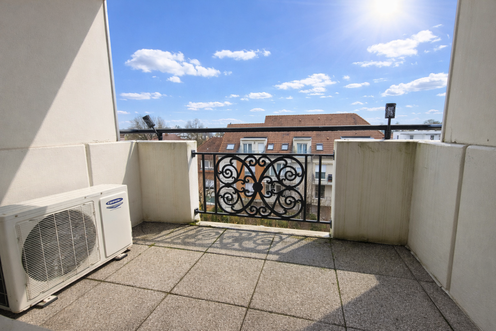 Il se compose comme suit : premier niveau, une entrée avec placards, une mezzanine pouvant faire office de chambre ou bureau. Au deuxième niveau : un salon-salle à manger de 35m² avec accès terrasse avec jolie vue dégagée donnant sur le parc. 2 chambres, une cuisine équipée, une salle de bains avec baignoire, un toilette séparé.