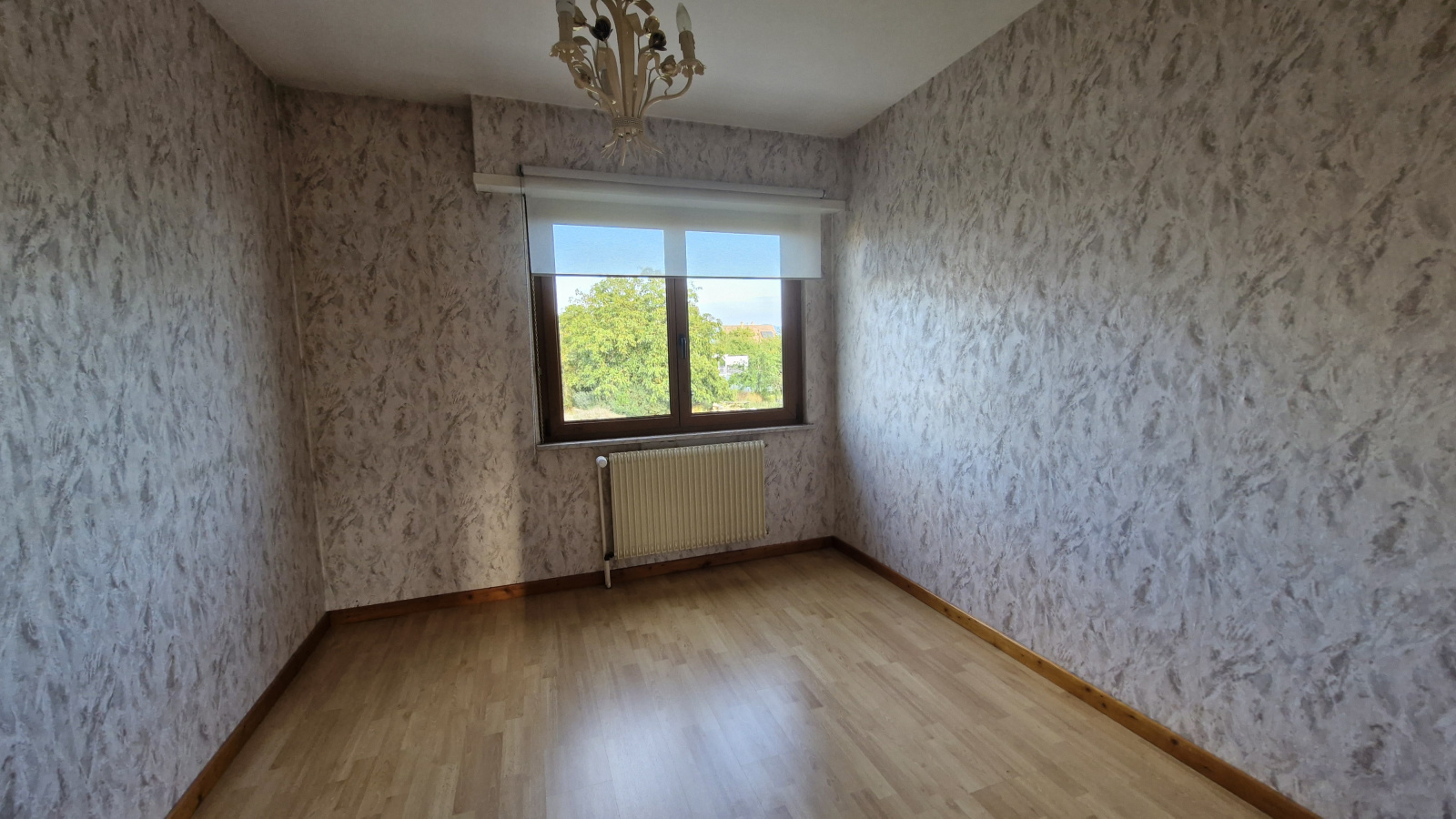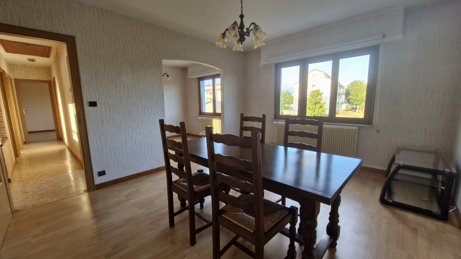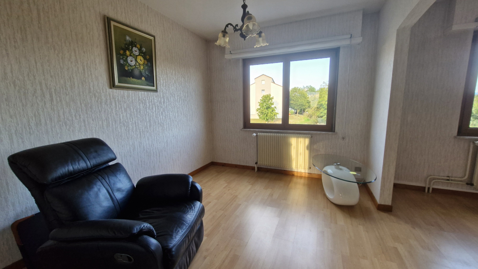 Grande cuisine équipée indépendante, séjour clair de 26m² avec vue dégagée, 3 chambres, salle de bain équipée, wc.