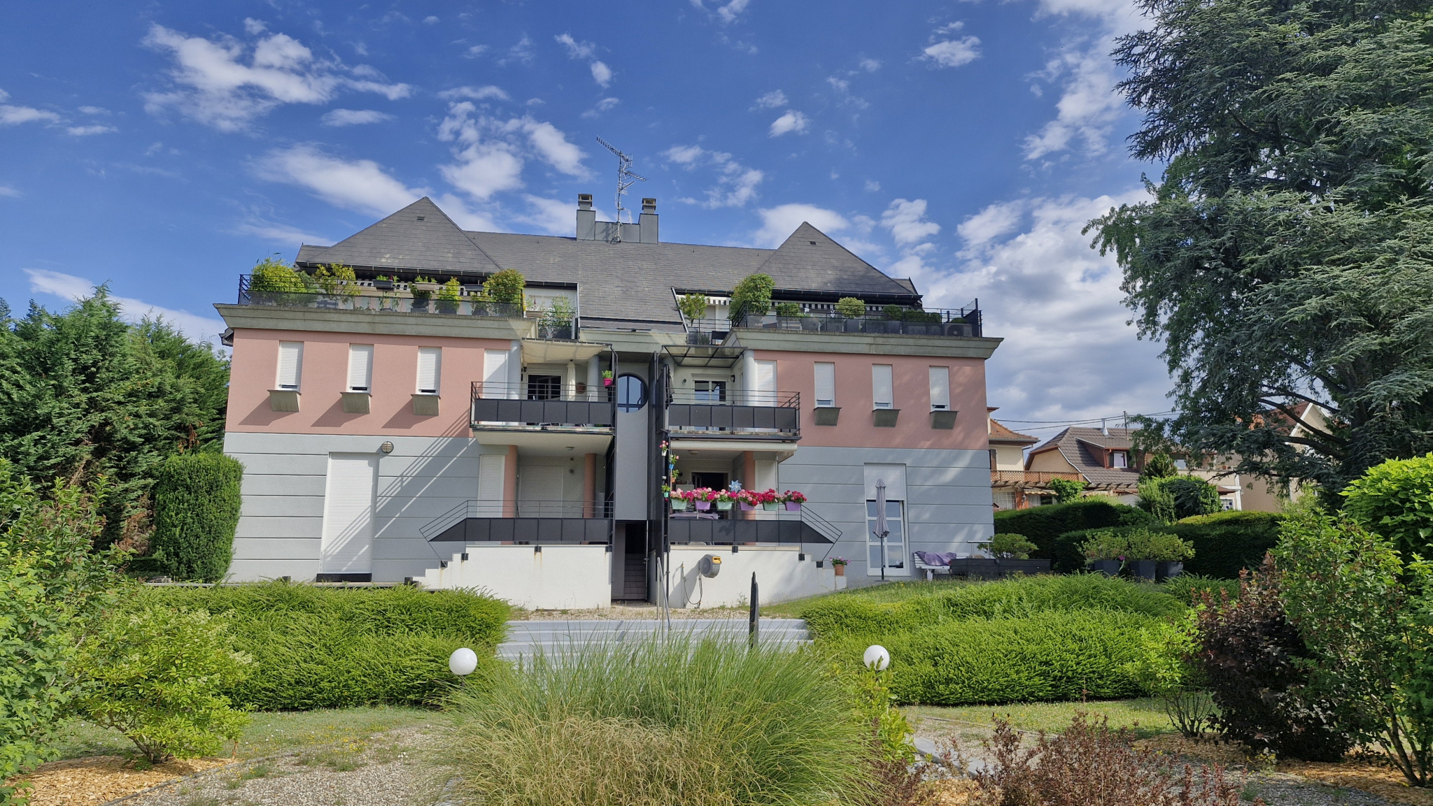 Sur les collines de Pfastatt, dans un environnement privilégié, superbe 3 pièces de 79m², au 1er étage avec ascenseur, dans résidence de haut standing sécurisée de 8 lots principaux: