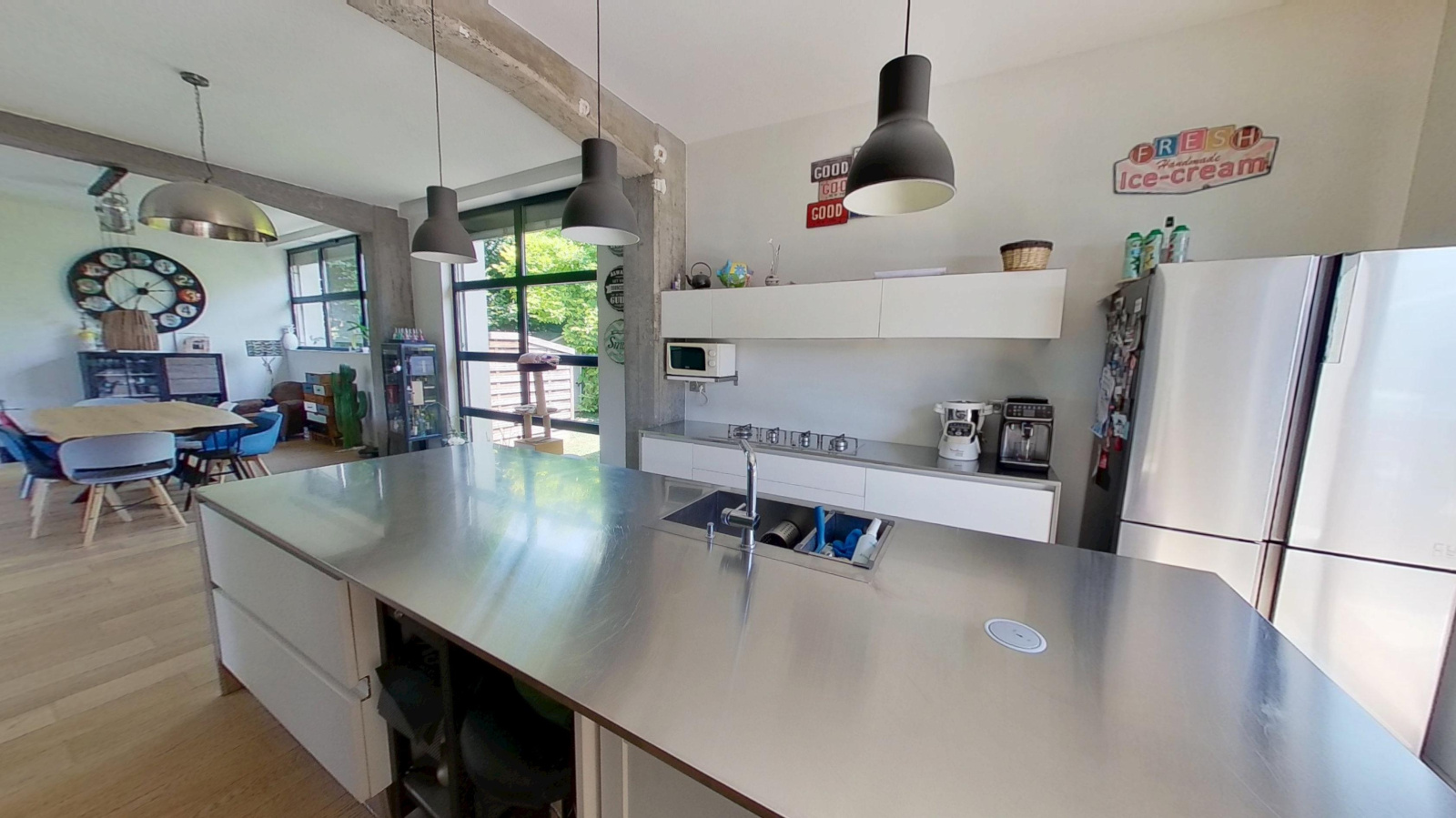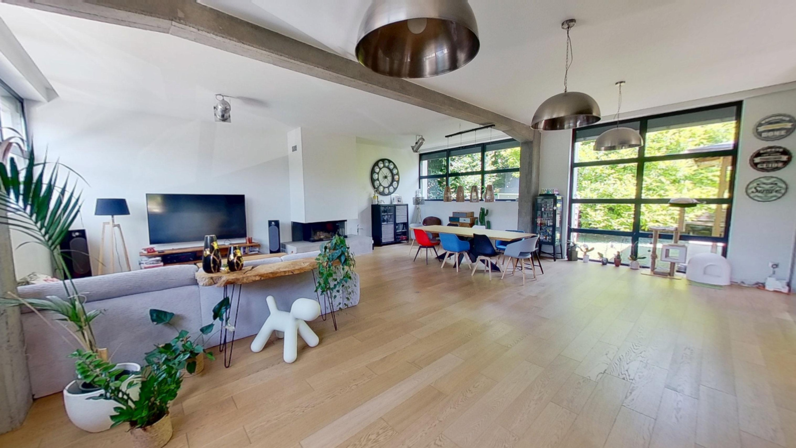 Dès l'entrée, laissez-vous séduire par ses grands volumes et ses matériaux de qualité : béton, métal, parquet massif, cheminée pour une ambiance résolument contemporaine. La pièce de vie de 83 m², baignée de lumière grâce à de grandes ouvertures, dispose d'une cuisine ouverte équipée avec un îlot central en inox, cellier attenant avec de nombreux rangements et coin technique. Elle donne directement accès à une belle terrasse de 40m² exposé sud ouest, parfaite pour profiter des belles journées ensoleillées et une seconde couverte de 12m².