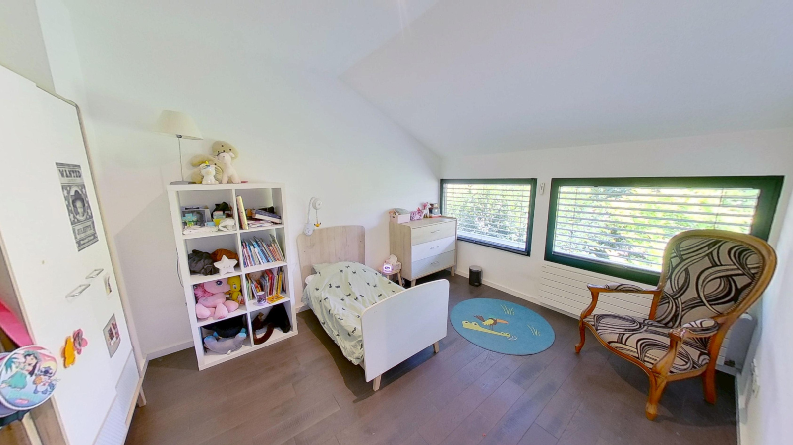 L'étage comprend une salle de bains moderne, un WC séparé, 3 chambres, dont une élégante suite parentale avec douche à l’italienne et dressing attenant.