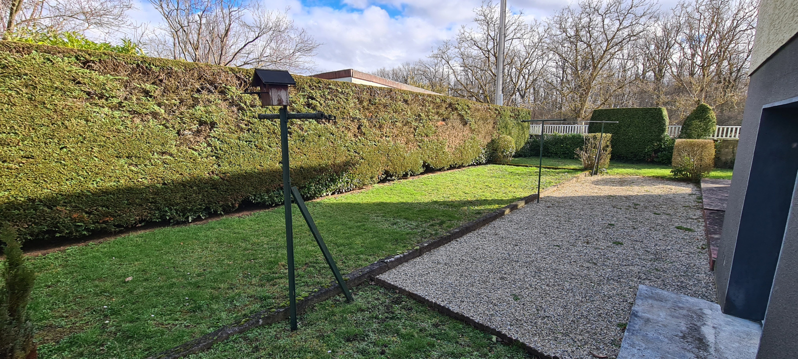 Au calme, en bout d'impasse avec vue sur la forêt et proche de toutes commodités, joli plain-pied d'environ 130m² comprenant une vaste entrée, une cuisine, une grande salle à manger, un salon, deux belles chambes de 12,5m² et 16m², une salle de bains, un cellier, un WC et un débarras.