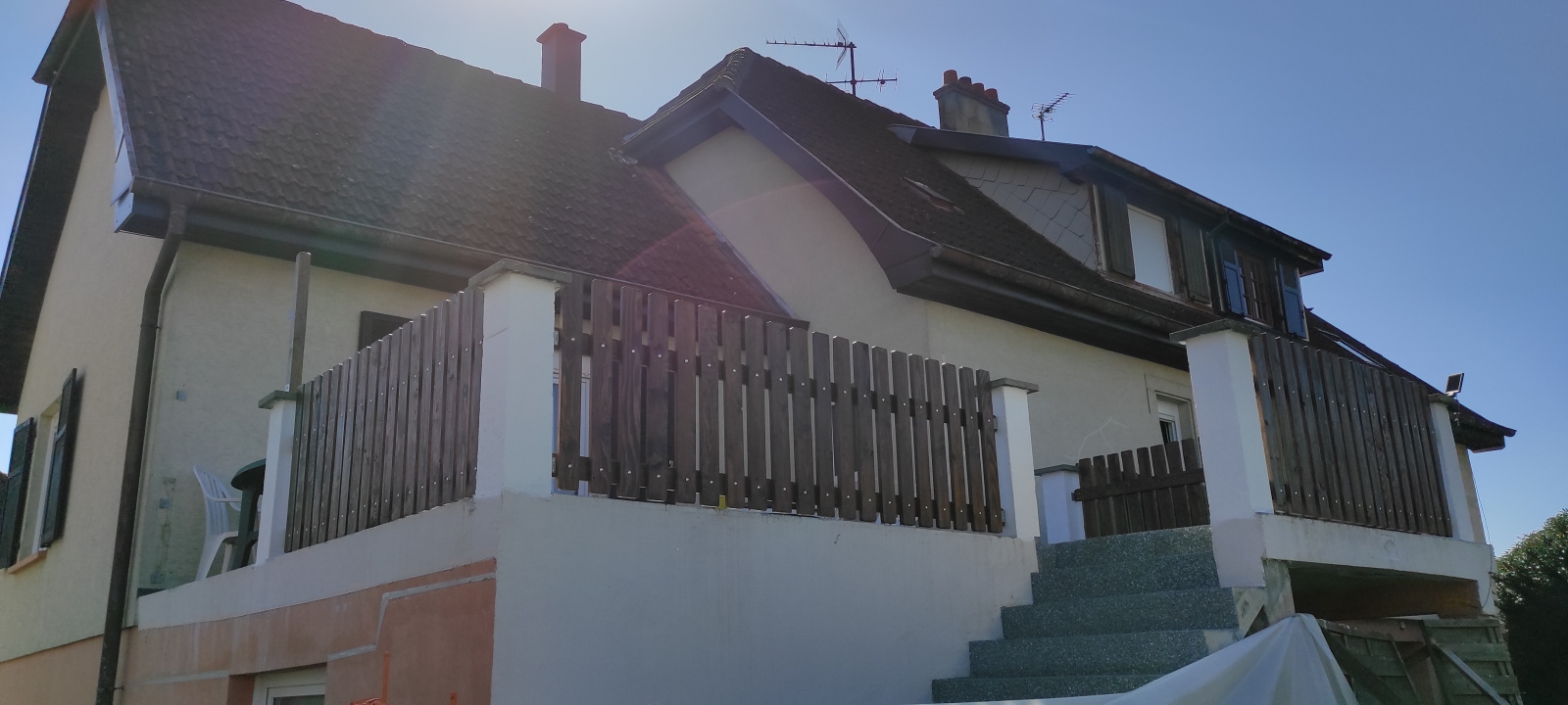 Une entrée, un double séjour donnant sur une très grande terrasse, une cuisine indép. équipée, une chambre, une salle de bains et un Wc. A l'étage une mezzanine, deux chambres. Un sous-sol complet avec double garage. chauffage gaz et bois. A voir Rapidement !