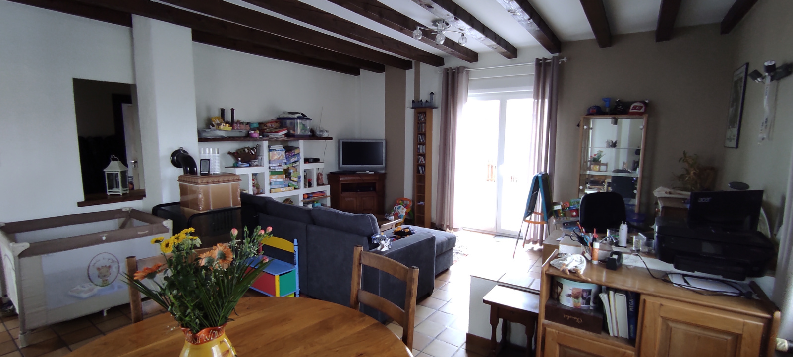 Située dans une ruelle calme, une maison familiale acc. d'un côté avec un spacieux terrain de + de 6 ares clos et arborés. La maison se compose ainsi :