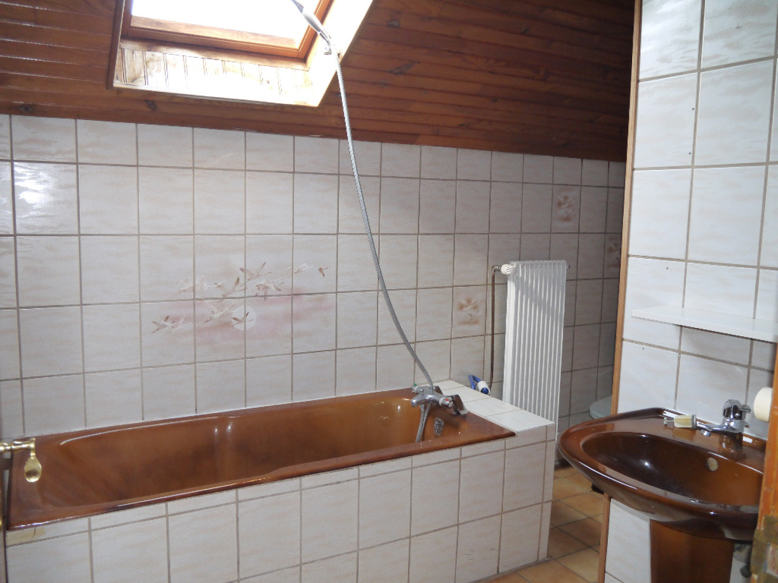 proche centre ville, sur rue principale, maison individuelle traditionnelle, 1963, 6p, séjour, 4 chambres dont 1 au rdc, cuisine et salle de bain équipées, cave, 2 garages, sur 6.65 ares, prévoir travaux, possibilité bi famille.