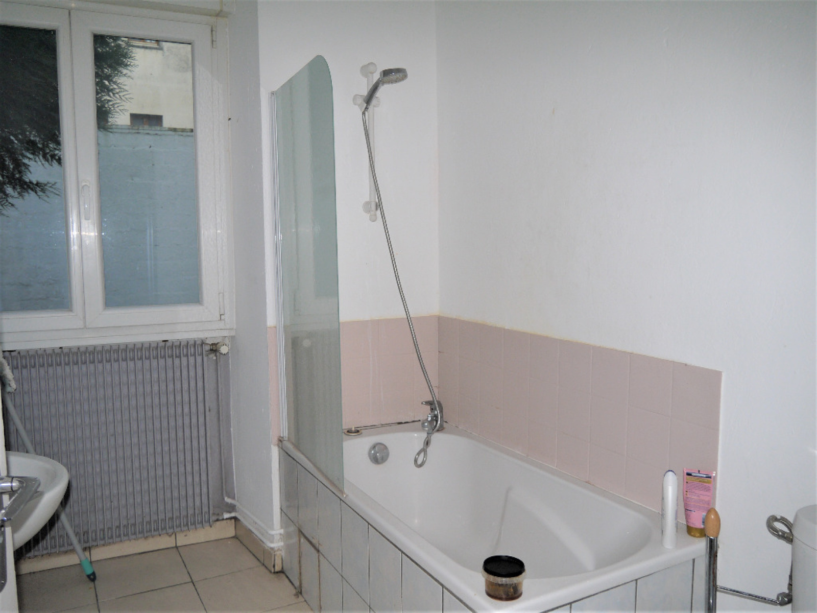 rdc: f1, 31m² env, séjour clair kitchenette, chambre sur cour, sdb, avec travaux.