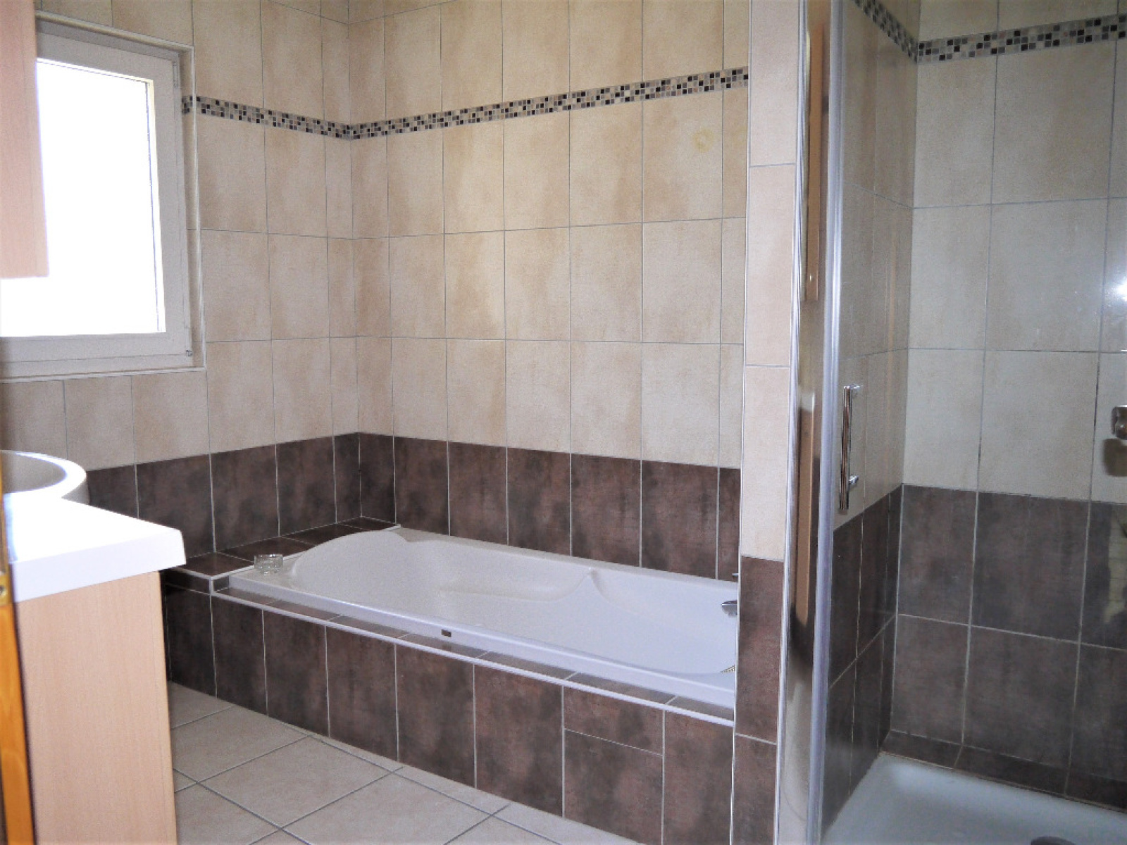 idéalement située au centre en impasse, bel maison individuelle cossue, totalement rénovée, cuisine équipée ouverte sur séjour, 2chambres, 2 sdb éq, buanderie terrasse, jardin cour parkings (poss garage), chauffage gaz. sur 3.8 ares env, état impeccable!