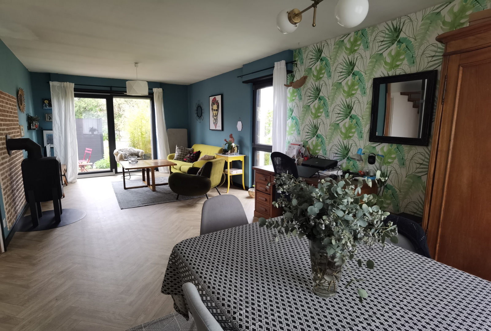 proche centre et gare, coup de coeur pour cette belle maison accolée sur un demi mur, sans vis à vis, 5p, an 83, rénovée avec gout, esprit "retro chic", séjour lumineux 33m² avec accès terrasse et poele contemporain, cuisine éq indépendante, 3chambres, salle de bain éq (douche baigoire wc), cave, buanderie, garage double, superbe jardin clos et verdoyant de 379m², parking privé. pas de travaux!