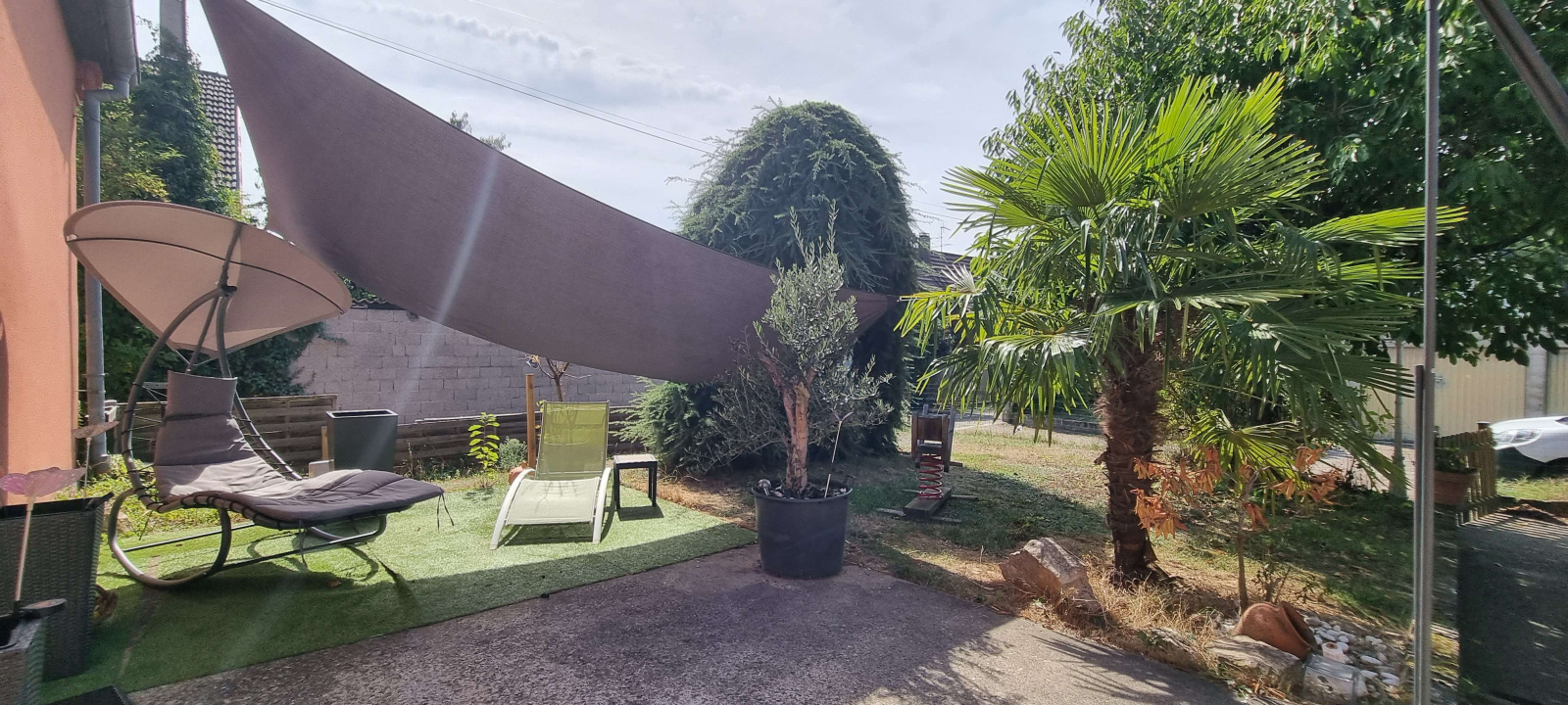 cave, terrasse, 2 garages, sur 5.4 ares.