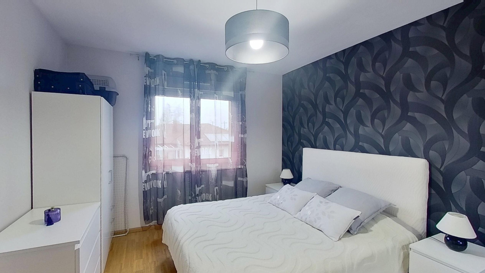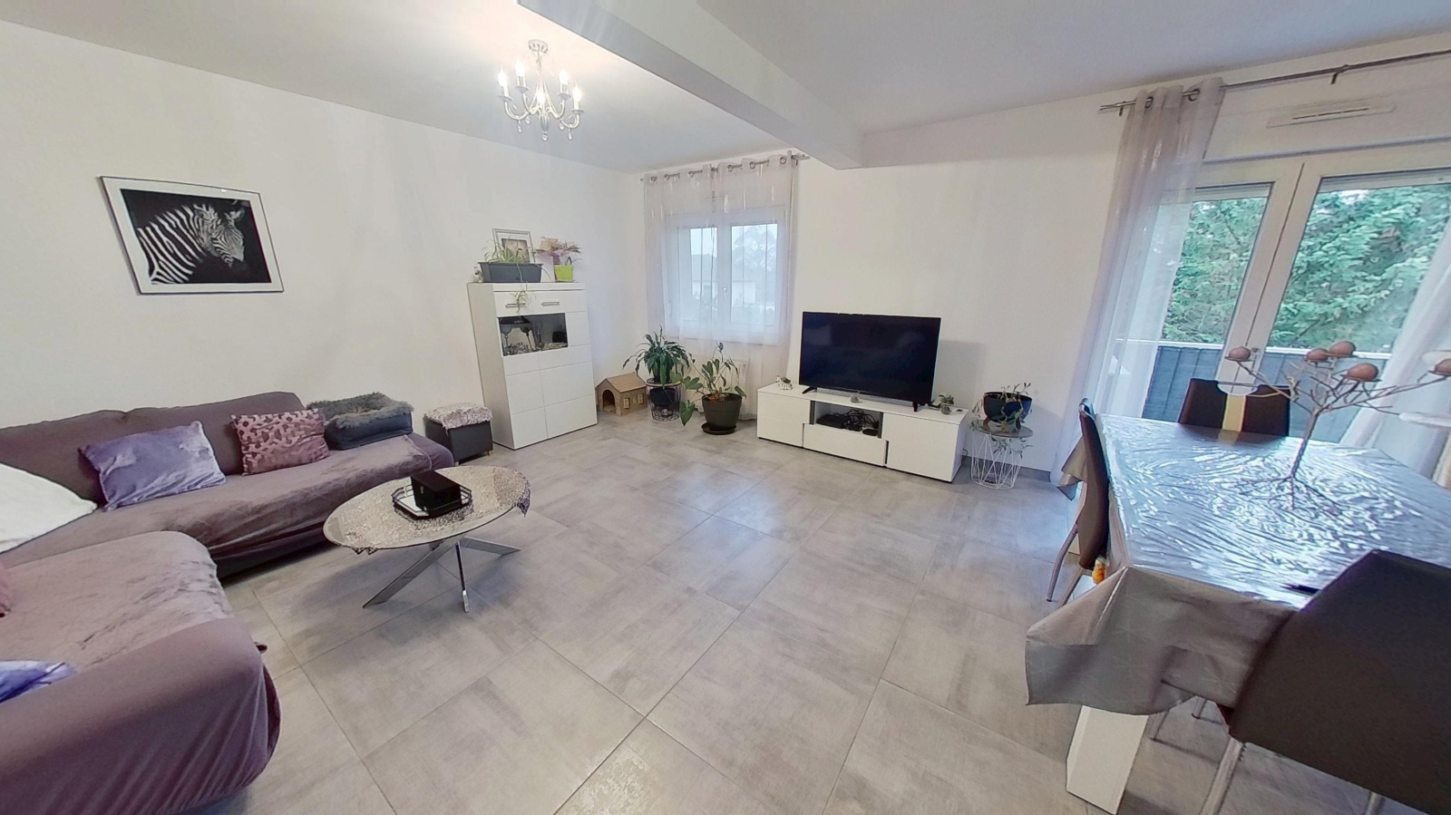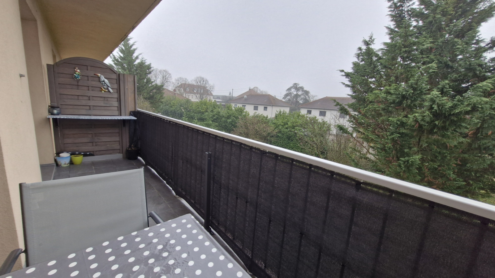 Séjour de 28m² avec accès à un balcon bien orienté, spacieuse cuisine équipée fonctionnelle, 2 chambres avec parquets massifs, wc suspendu, salle d'eau avec fenetre, rangements, cave et garage spacieux avec électricité.