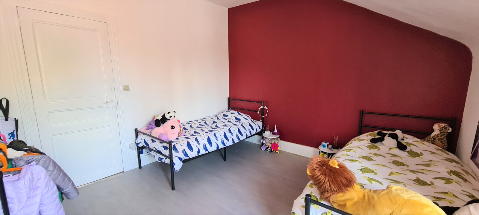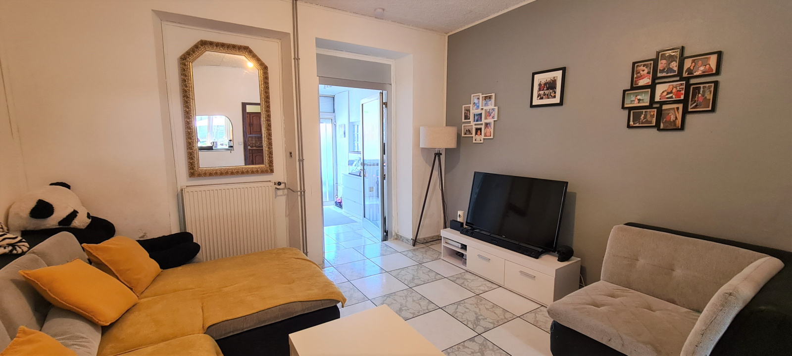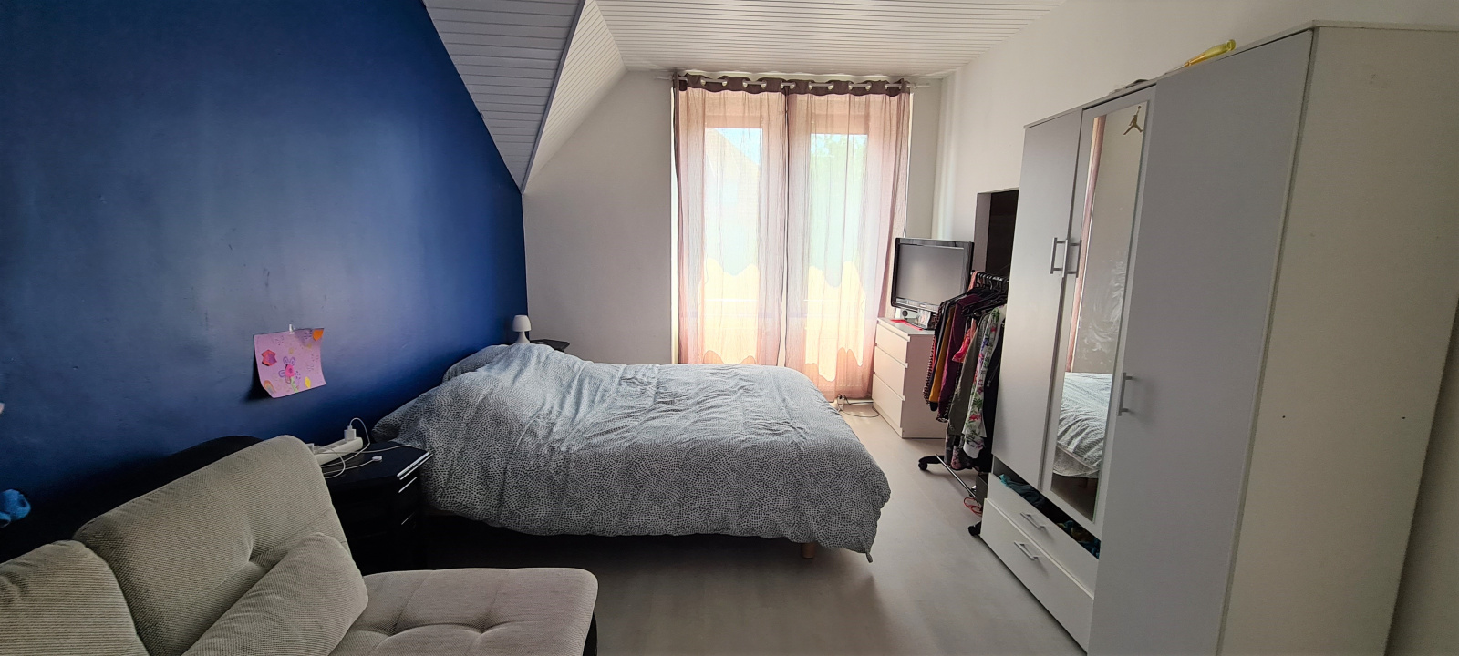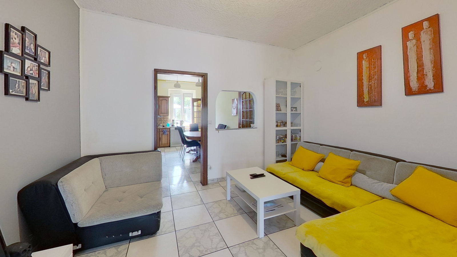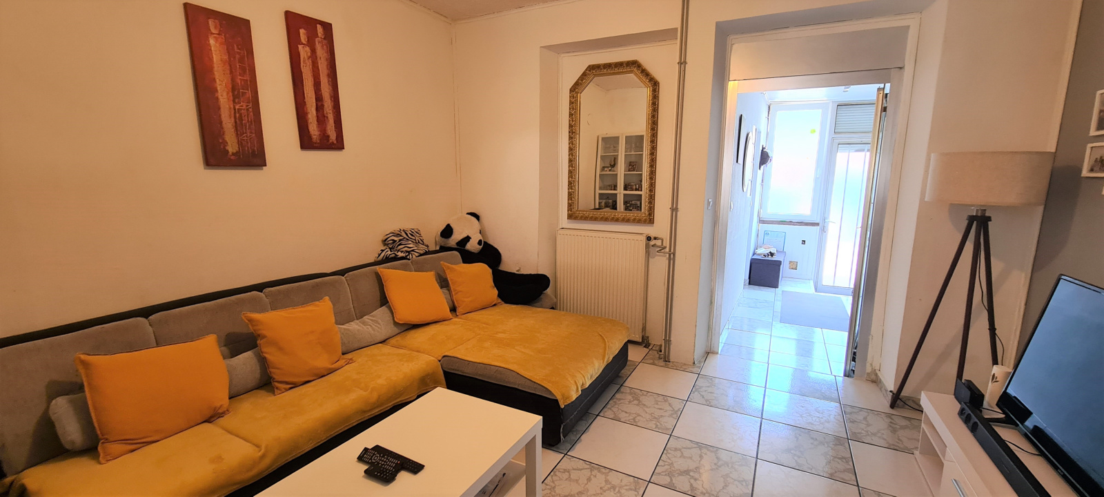 située dans la cité Lang, coquette petite maison jumelée de 3p d'une surface de 70m² comprenant une entrée, une cuisine équipée avec coin repas donnant accès à une terrasse exposée sud, un salon/séjour, une salle de bains avec douche, baignoire et WC. A l'étage deux chambres en enfilade, possibilité de cloisonner. Au sous-sol, une buanderie et une pièce servant actuellement de salle de jeux. A l'extérieur, un garage, le tout sur un terrain clôturé d'environ 2,13 ares. Prévoir travaux, salle de bains, rafraichissement. Chauffage gaz récent.