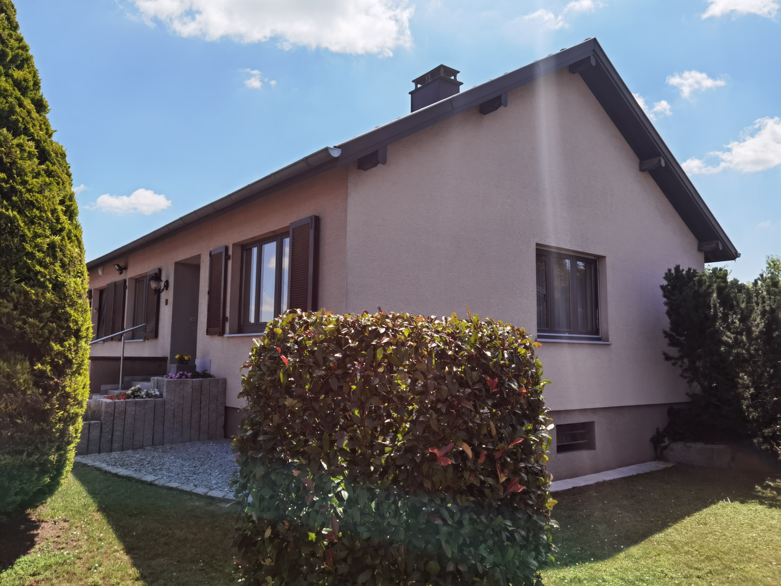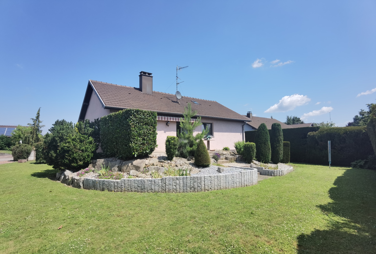 en quartier pavillonaire, superbe plain pied 5p, séjour 28m² avec cheminée et baie vitrée, cuisine et sdb éq, 2chambres (dont une de 24m² divisible)+ 1 pièce en sous sol de 28m², cave, garage, terrasse ensoleillée, superbe terrain paysagés de 7.30 ares.