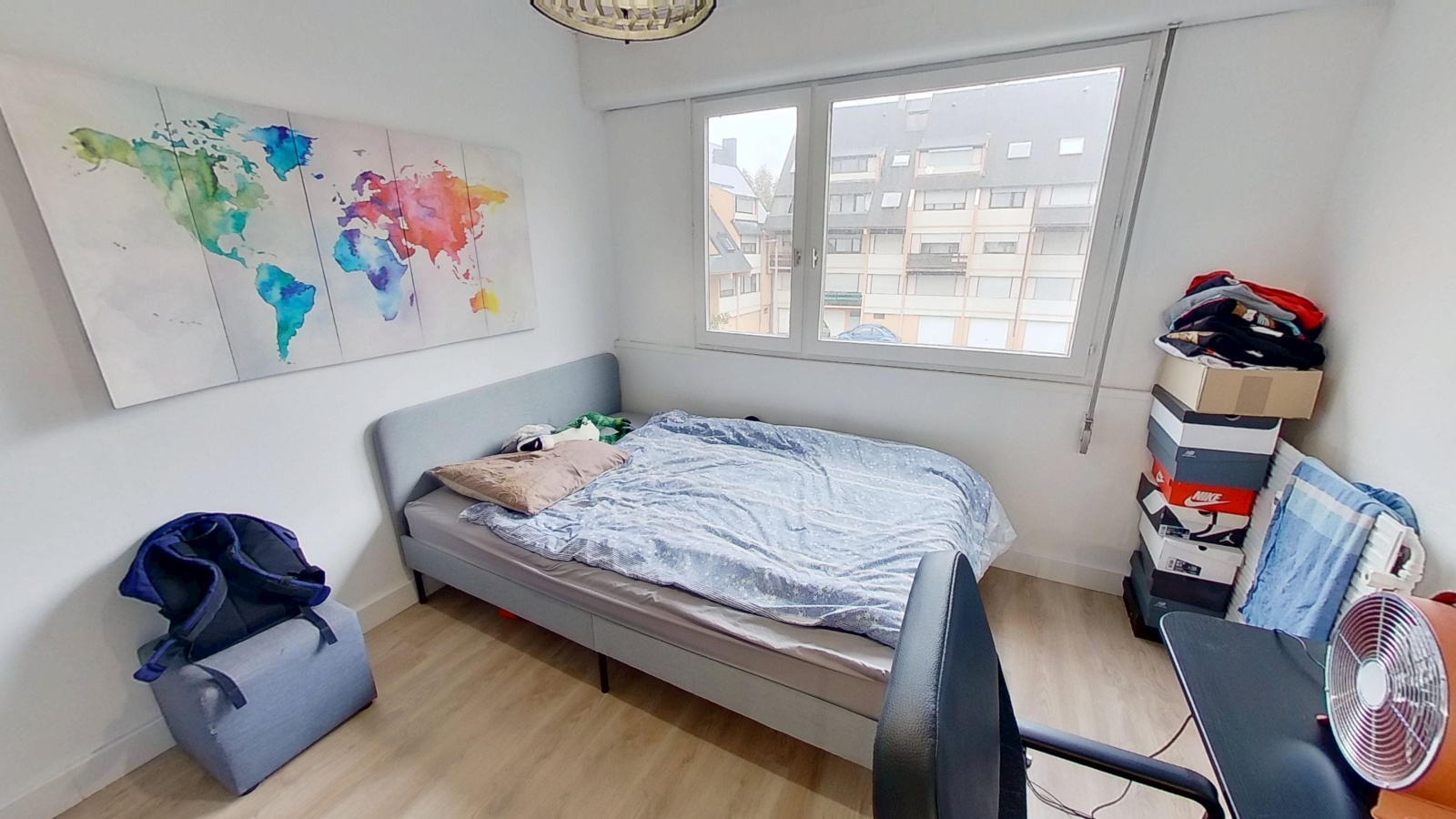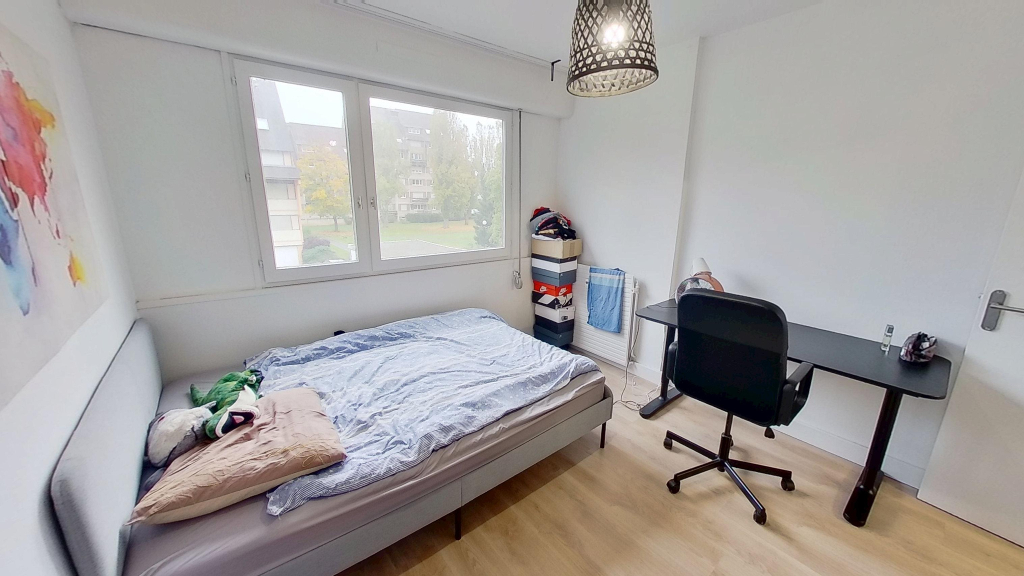 Situé dans un environnement calme et au 1er étage d’un immeuble des années 70 avec ascenseur, lumineux 4 pièces traversant de 78m² rénové en 2020 comprenant une entrée avec grand placard intégré, une cuisine équipée avec coin repas, un salon/salle à manger de 28m², 2 chambres dont une avec un balcon, une salle de bains, un W.C. et une cave.